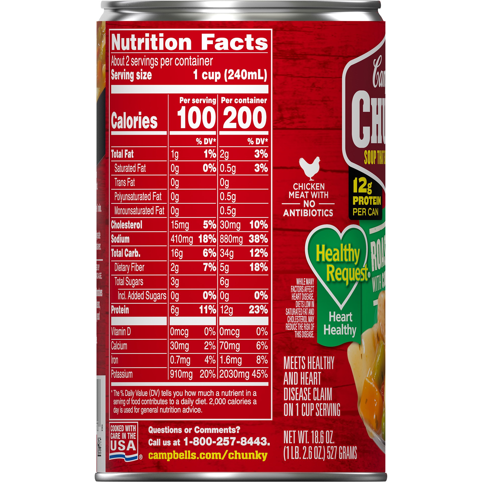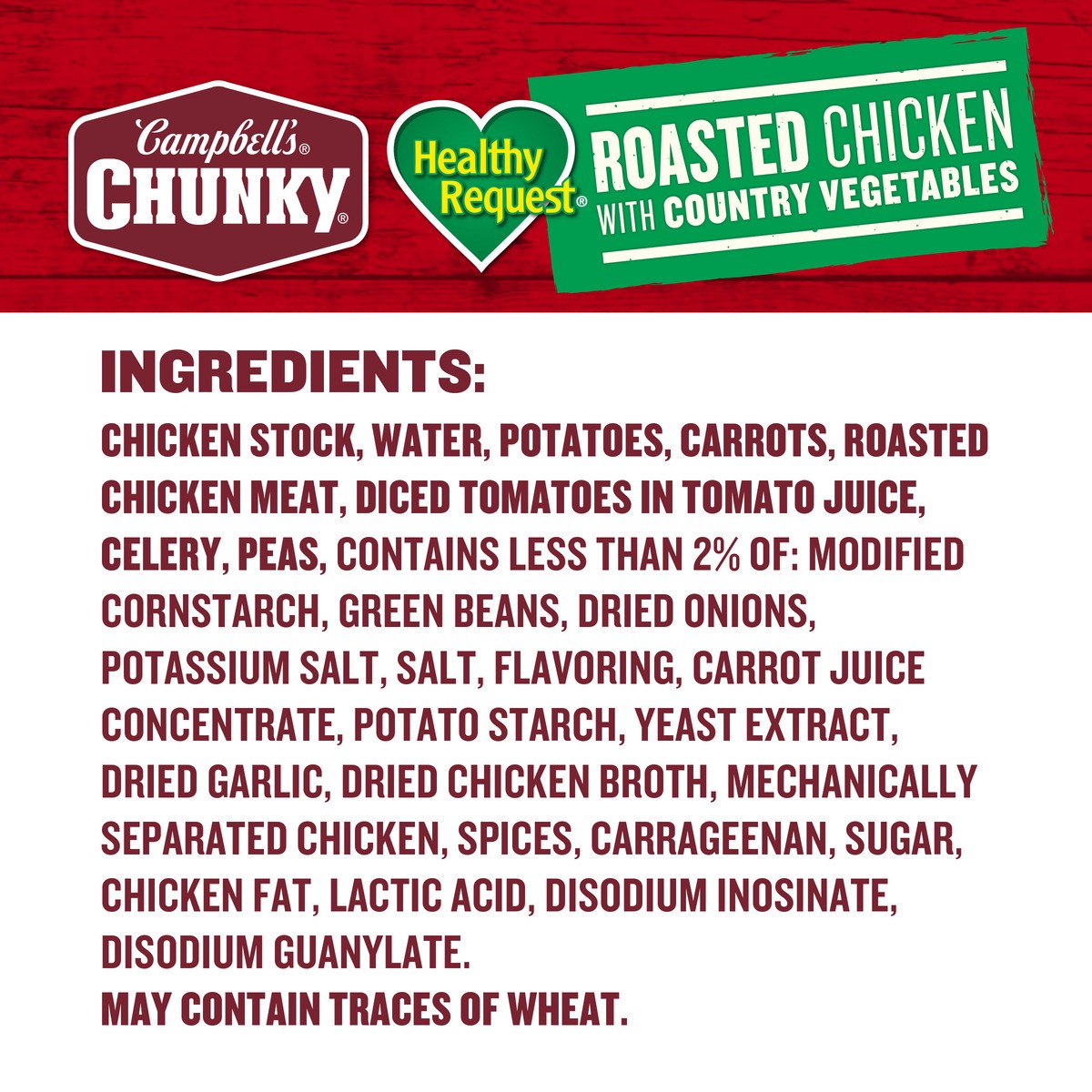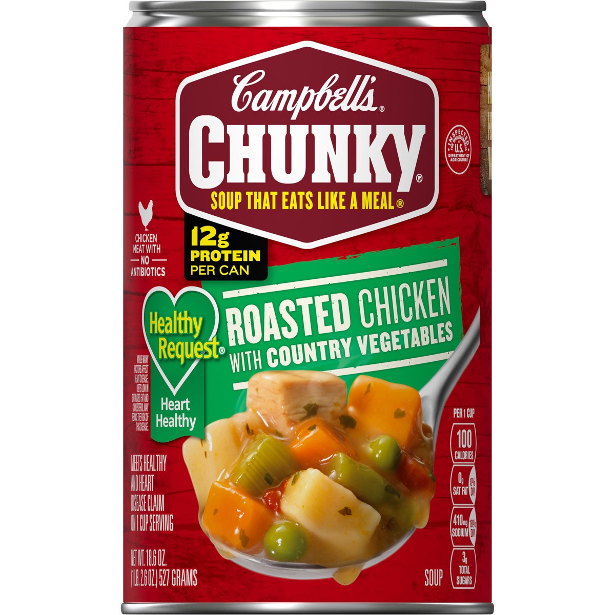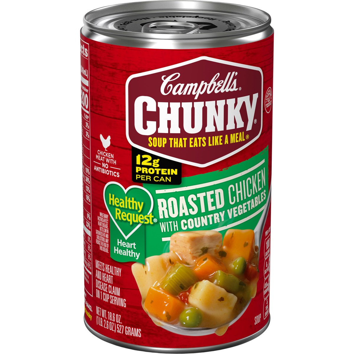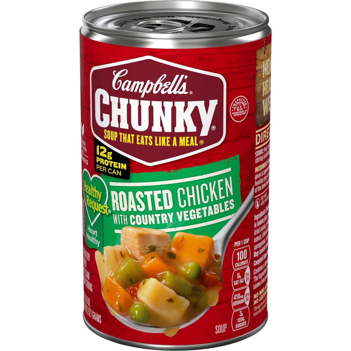 Campbell''s Chunky Healthy Request Roasted Chicken Soup with Country Vegetables isn''t just tasty—it's made to work as hard as you do. With never-ending big flavors and bold ingredients, this canned s…