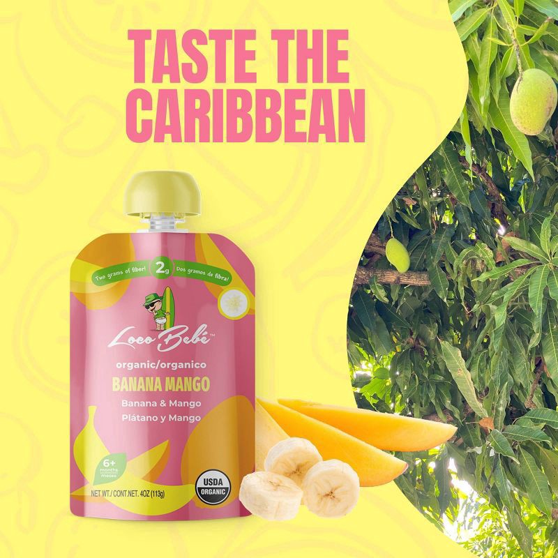 Organic mango puree, organic banana puree, organic lime juice.' '
