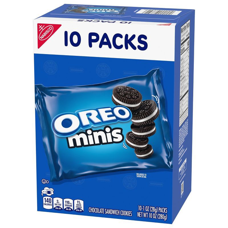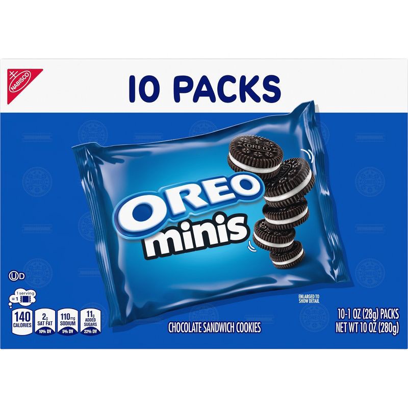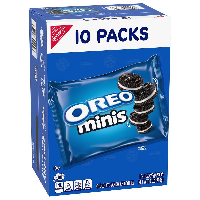 - One box of 10 - 1 oz snack packs of OREO Mini Chocolate Sandwich Cookies (packaging may vary)