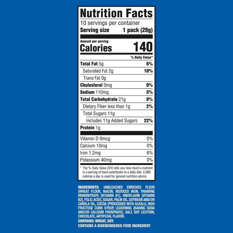 UNBLEACHED ENRICHED FLOUR (WHEAT FLOUR, NIACIN, REDUCED IRON, THIAMINE MONONITRATE [VITAMIN B1], RIBOFLAVIN [VITAMIN B2], FOLIC ACID), SUGAR, PALM OIL, SOYBEAN AND/OR CANOLA OIL, COCOA (PROCESSED WITH…