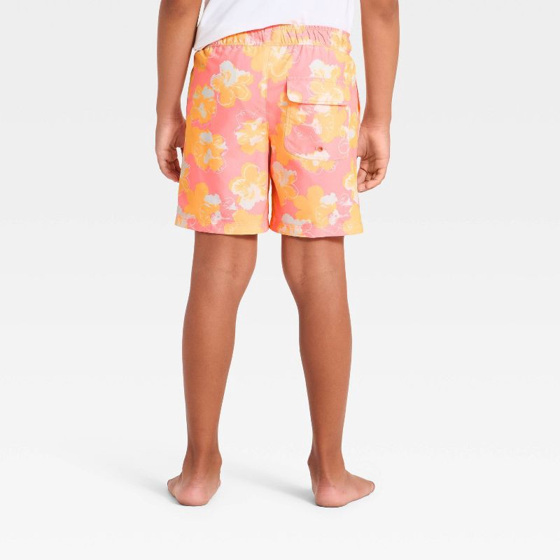 Boys' Hibiscus Printed Swim Trunks - Cat & Jack™ Coral Orange M