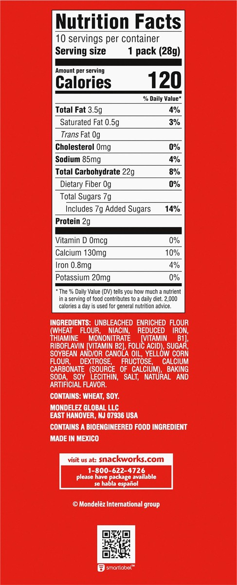 Unbleached Enriched Flour (Wheat Flour, Niacin, Reduced Iron, Thiamine Mononitrate [Vitamin B1], Riboflavin [Vitamin B2], Folic Acid), Sugar, Soybean and/or Canola Oil, Yellow Corn Flour, Dextrose, Fr…