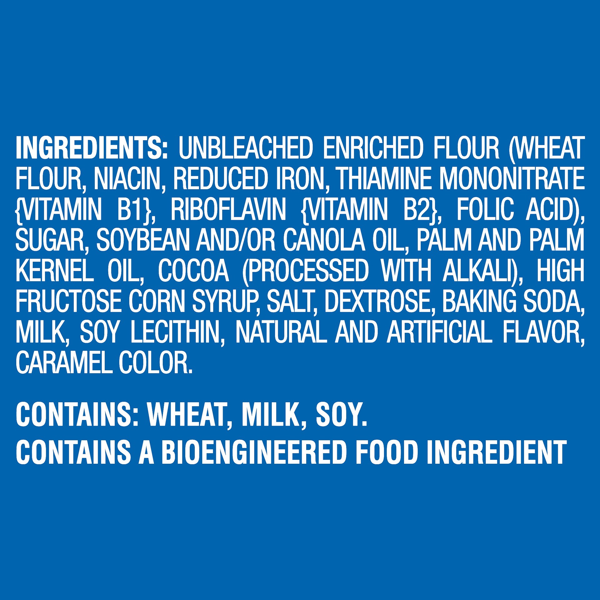 Unbleached Enriched Flour (Wheat Flour, Niacin, Reduced Iron, Thiamine Mononitrate {Vitamin B1}, Riboflavin {Vitamin B2}, Folic Acid), Sugar, Soybean and/or Canola Oil, Palm and Palm Kernel Oil, Cocoa…