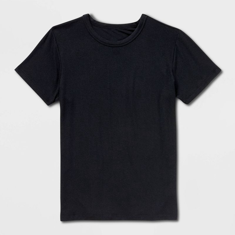 Bring a sleek and polished vibe to your outfits with this Short-Sleeve Fitted Jersey T-Shirt from A New Day™. Made of modal-spandex blend jersey fabric, this short-sleeve T-shirt moves and stretches w…