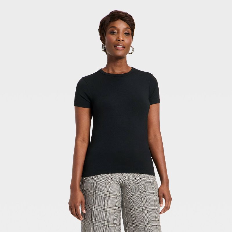 Women's Short Sleeve Fitted Jersey T-Shirt - A New Day™ Black XS