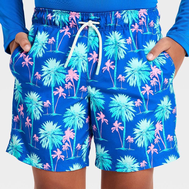Boys' Palm Tree Printed Swim Trunk - Cat & Jack™ Blue/Pink S