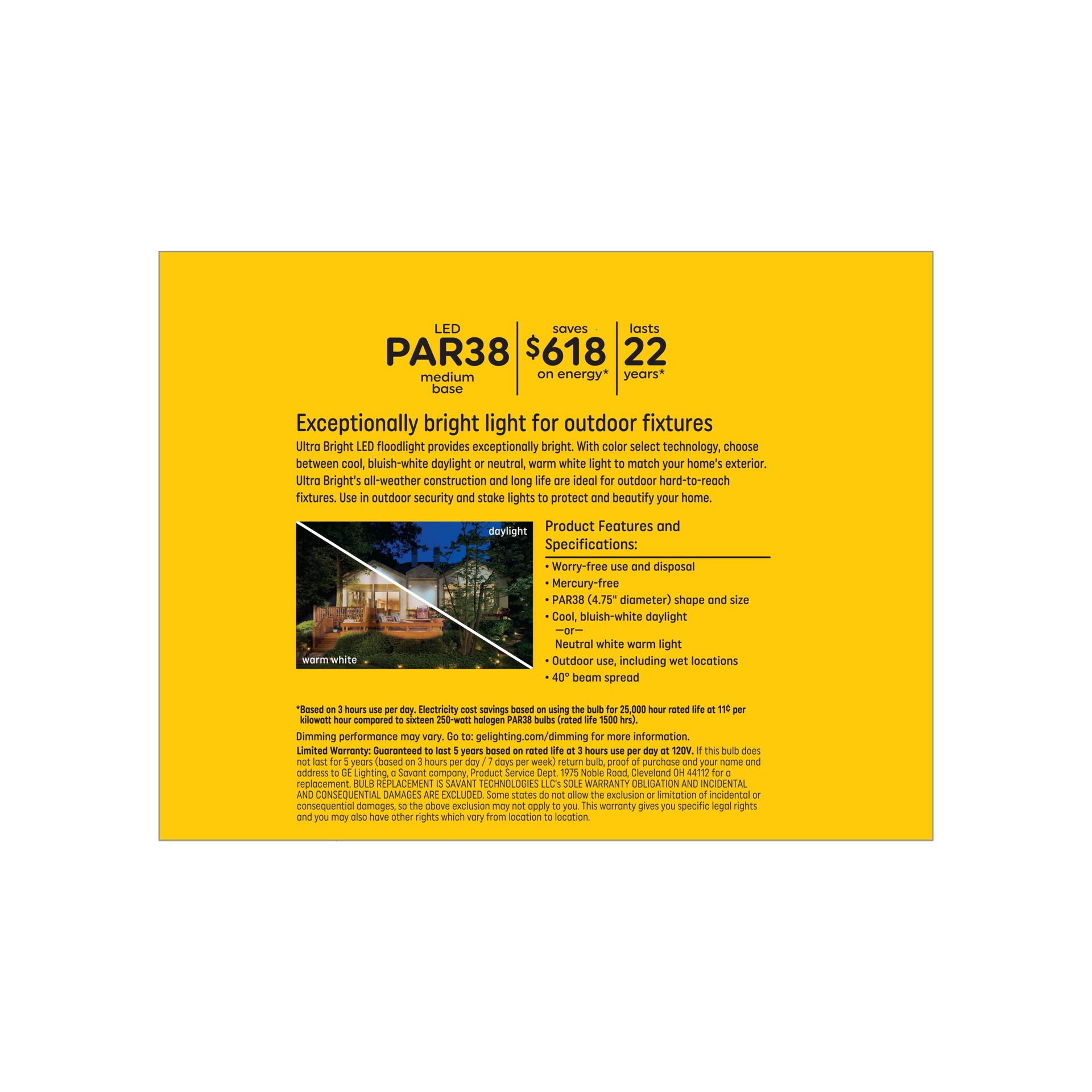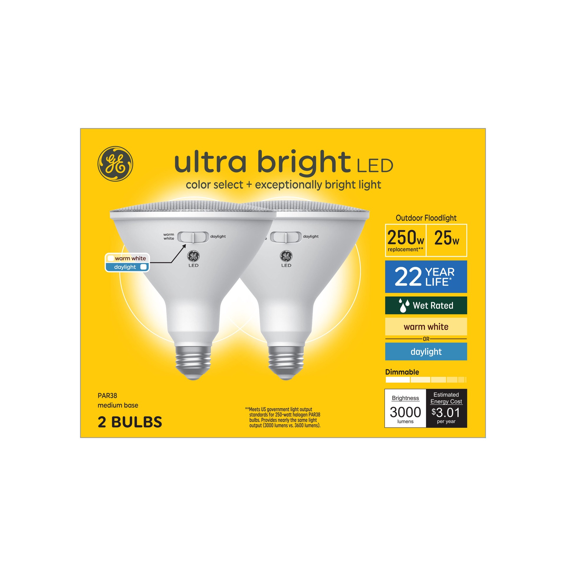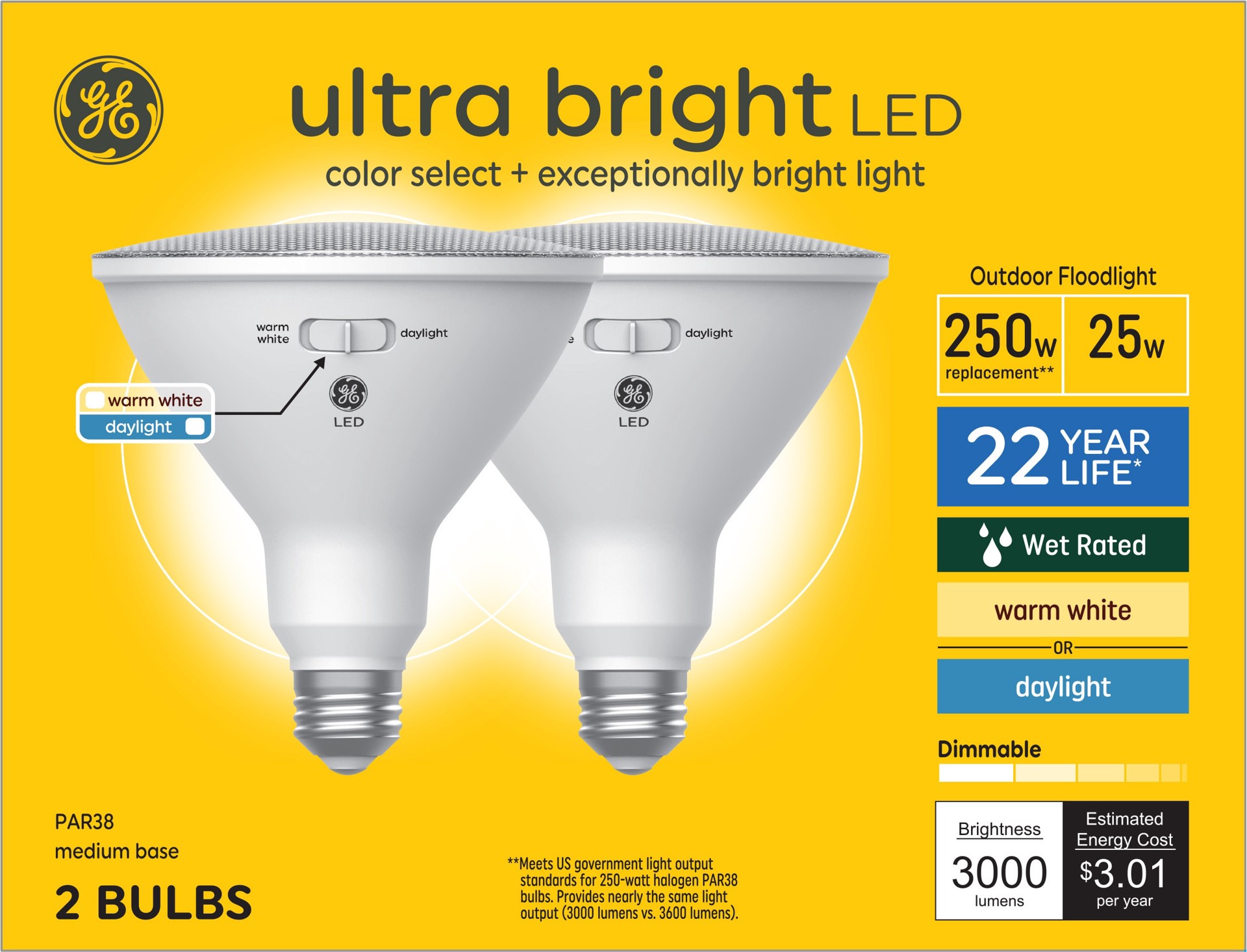 GE Ultra Bright 250 -Watt EQ PAR38 Color-changing Medium screw base E26 Dimmable LED Spot Flood Light Bulb 2 -Pack