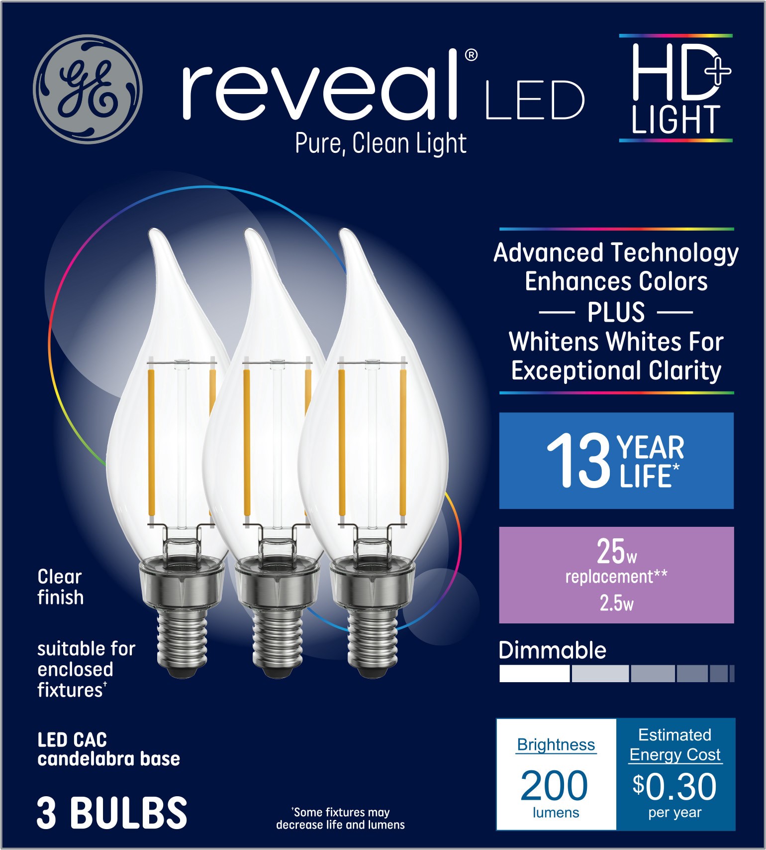 GE 25 -Watt EQ CA11 Color-enhancing Candelabra screw base E12 Dimmable LED Decorative Light Bulb 3 -Pack