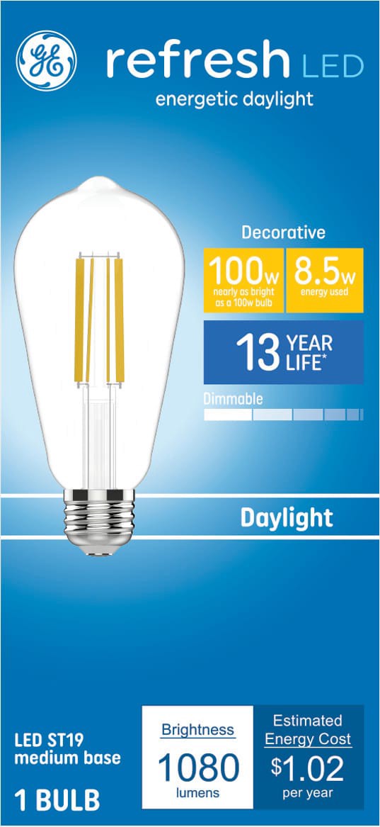 GE Refresh HD 100 -Watt EQ ST19 Daylight Medium screw base E26 Dimmable LED General purpose Light Bulb