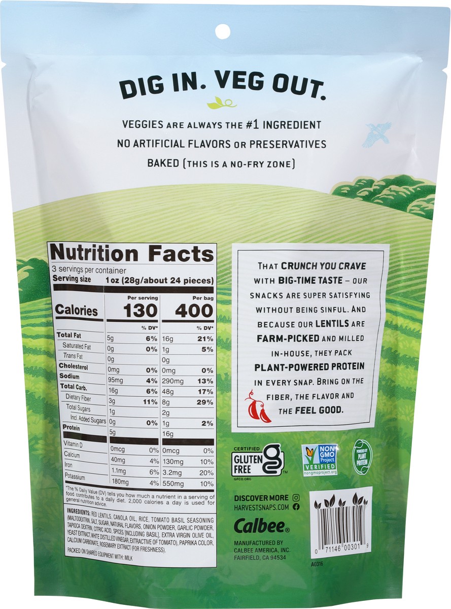 Harvest Snaps Crisps Tomato Basil Red Lentil Snack - 3 Oz