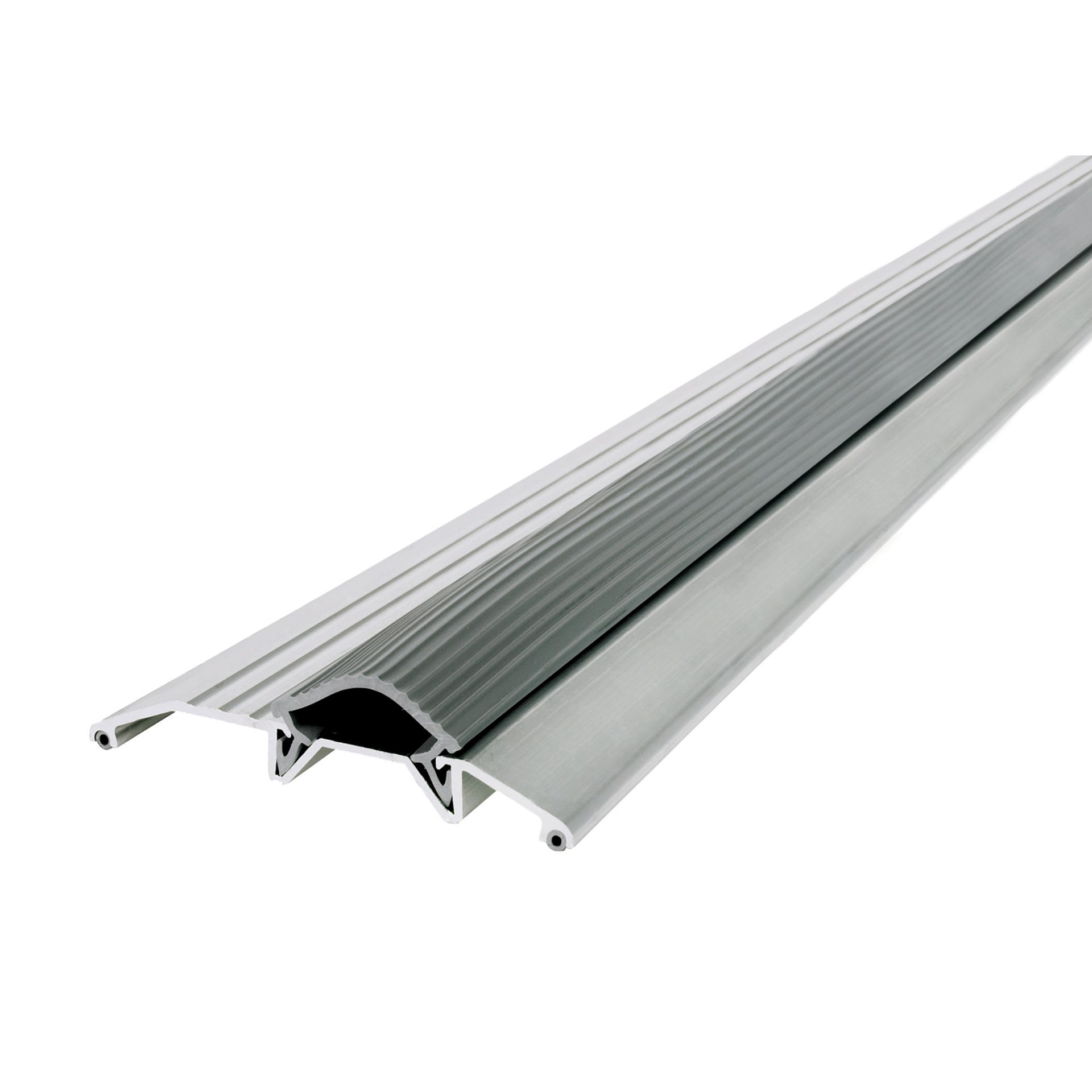 Made of heavy-duty durable aluminum and flexible vinyl. Use to replace the threshold of exterior doors. Flexible vinyl feet seal bottom of threshold. Silver color. Protects against drafts, moisture, d…