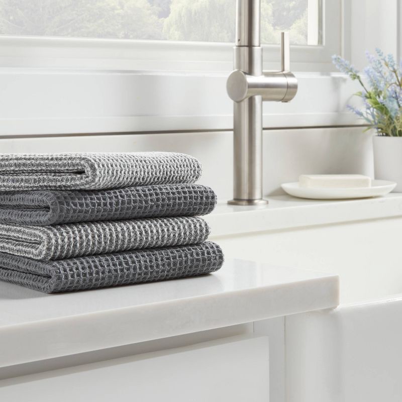 Tackle all of your kitchen cleaning tasks with this 4-Pack of Cotton Waffle Dishcloths from Threshold™. This multipack of four dishcloths makes a practical addition to your kitchen linen essentials. T…