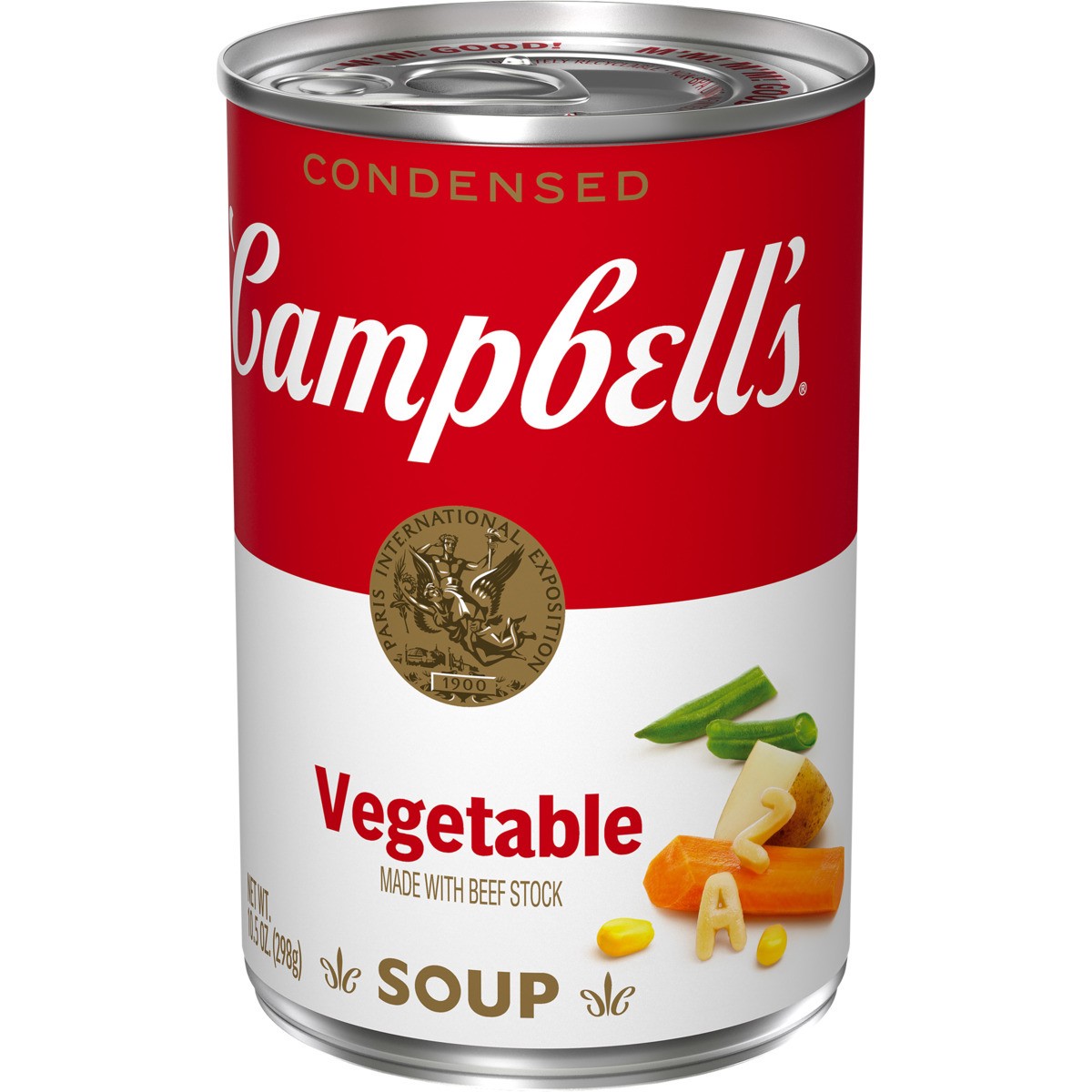 Campbell''s Condensed Vegetable Soup With Beef Stock brings comfort to every spoonful.Made with beef stock, carrots, potatoes, green beans, corn, and pasta, it''s the kind of chicken soup that warms b…