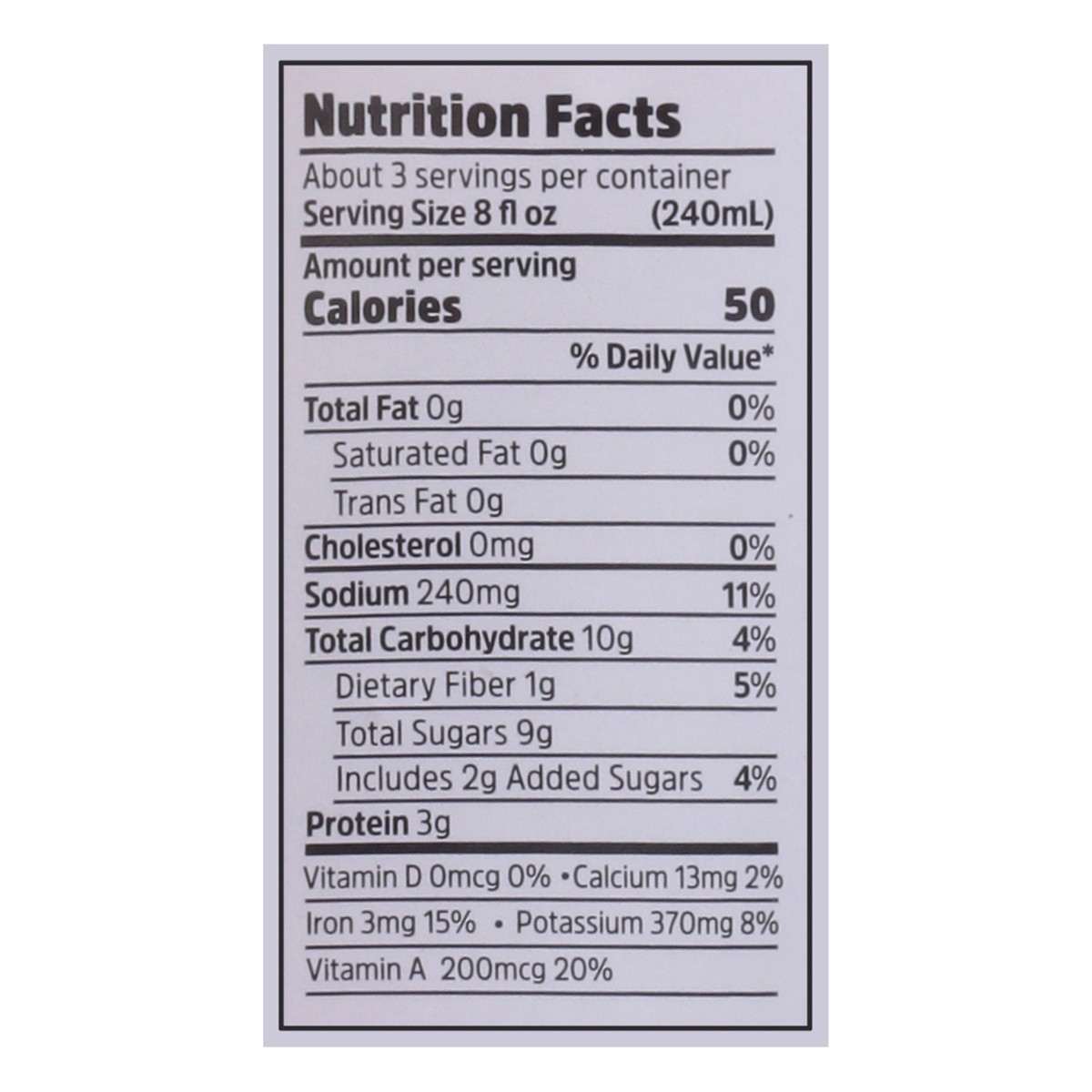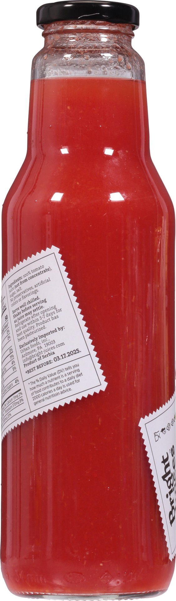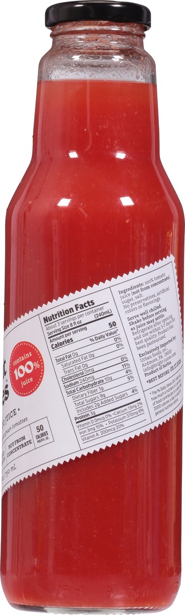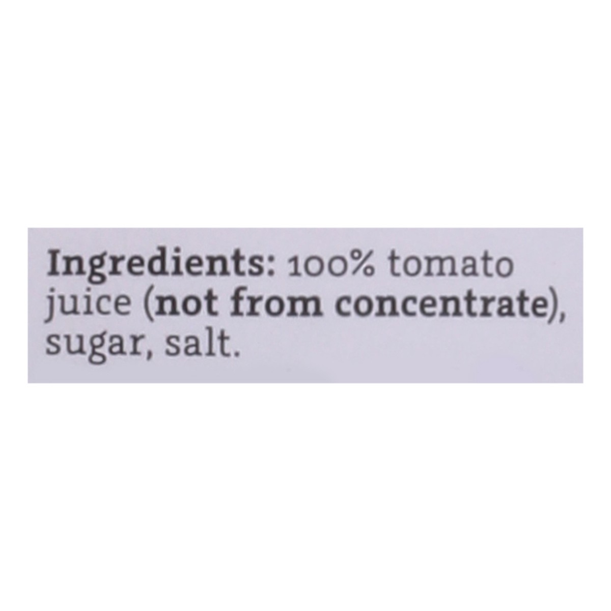100% Tomato Juice (Not From Concentrate), Sugar, Salt.