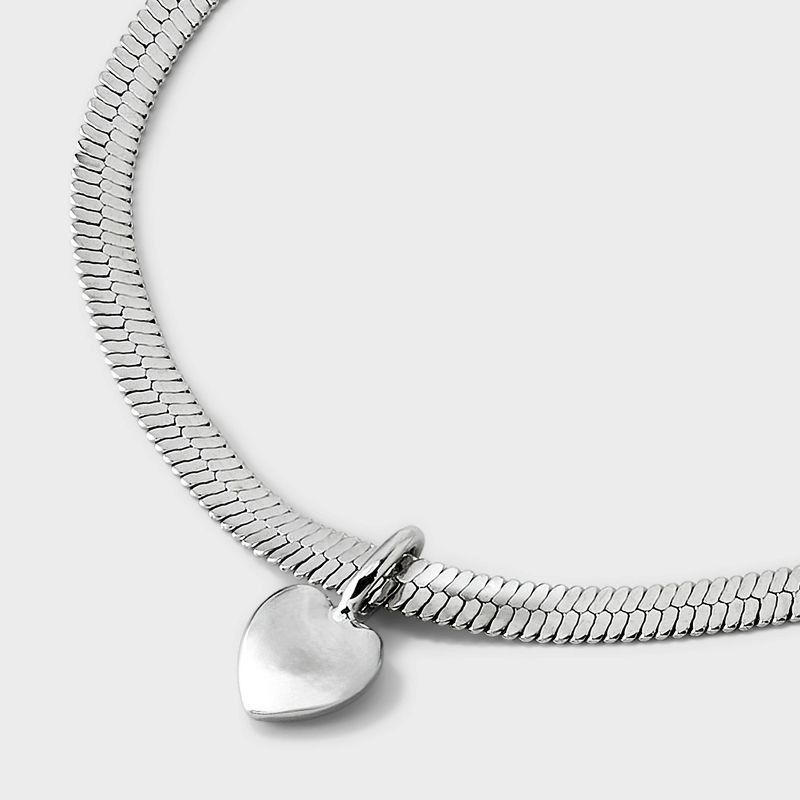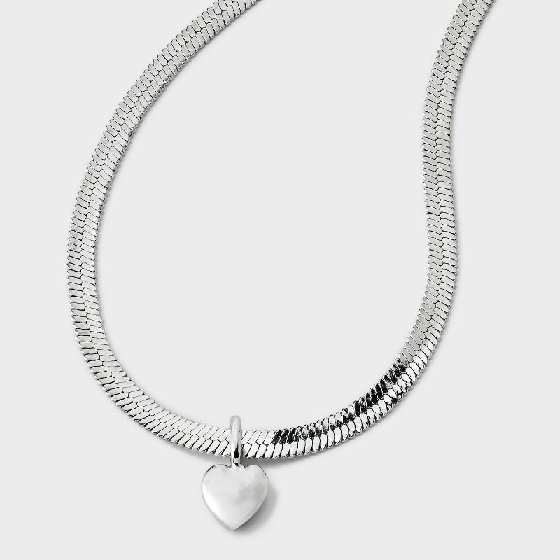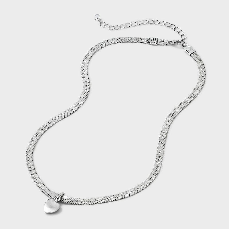 Heart charm necklace from Wild Fable™ in a silver-white rhodium finish. Features a flat snake chain with a heart-shaped pendant. Designed with a 16-inch overall length and a 3-inch extender chain for …
