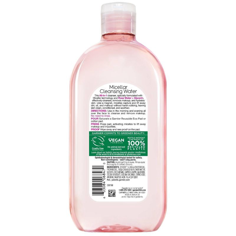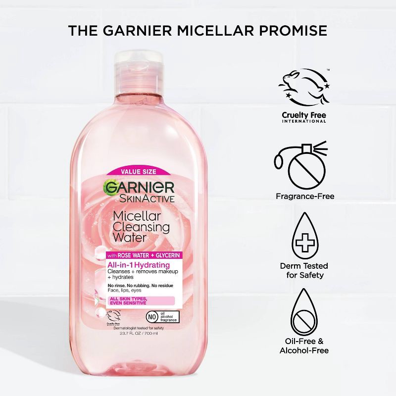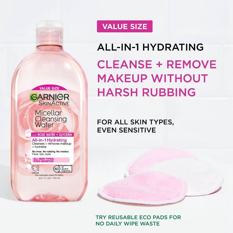 Garnier Micellar Water with Rose Water and Glycerin Hydrating Makeup Remover - 23.7 fl oz: Aluminum-Free, Hypoallergenic, Vegan