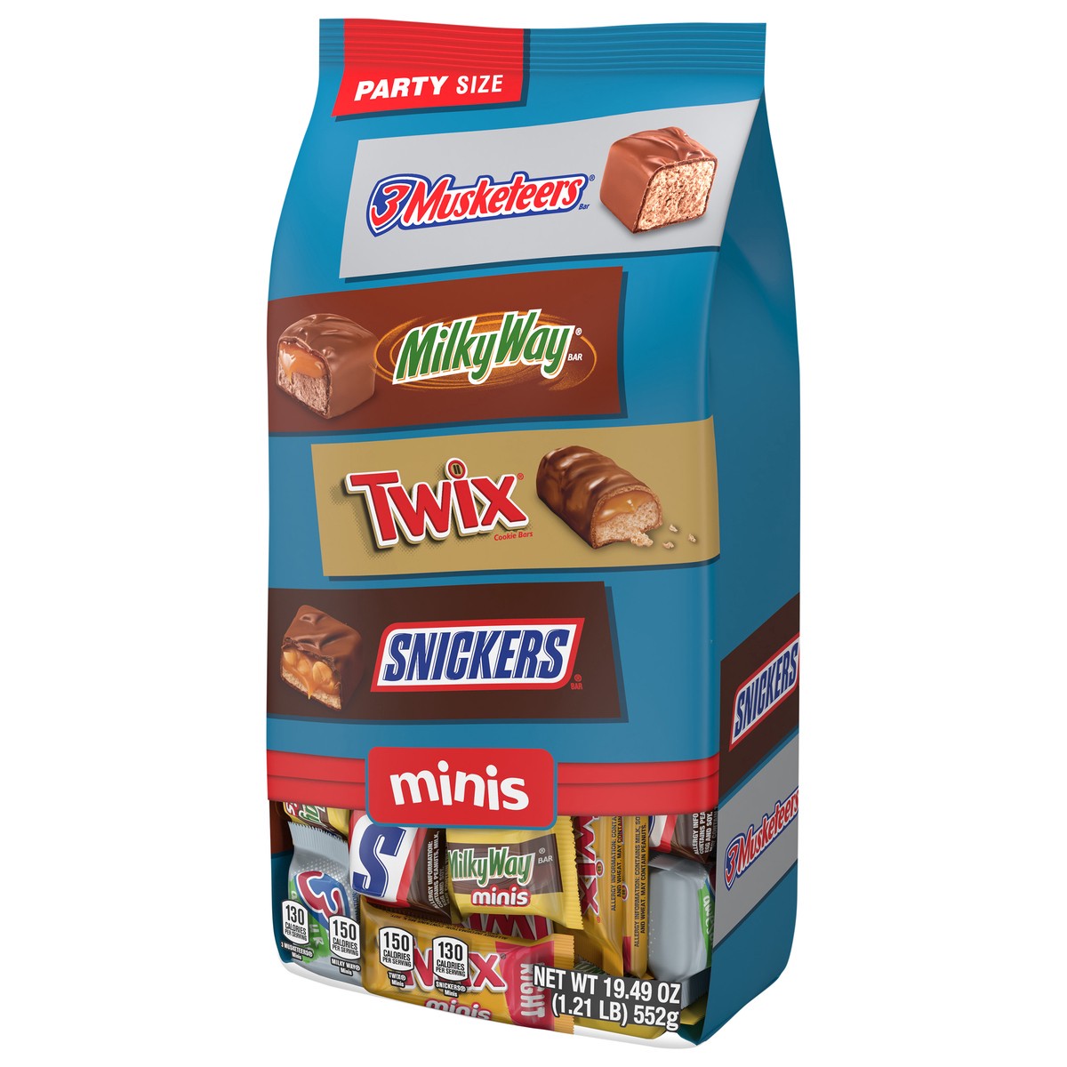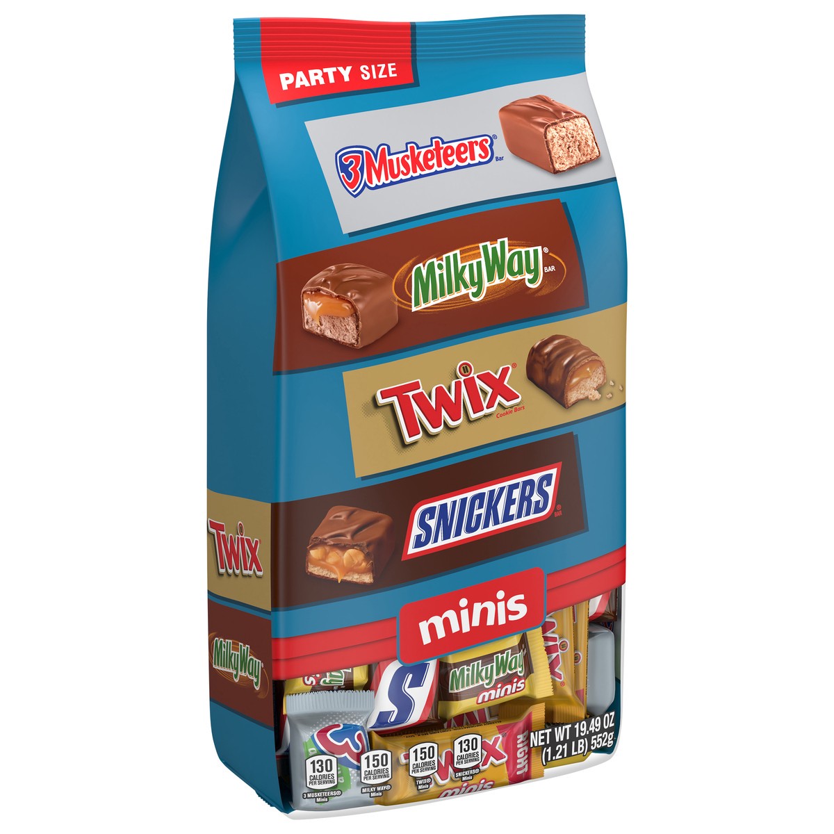 Enjoy this assortment of mini classic milk chocolate bars with BIG taste! SNICKERS, TWIX, MILKY WAY & 3 MUSKETEERS Minis Variety Bag is perfect for all occasions. Ideal for party favors, movie nights,…