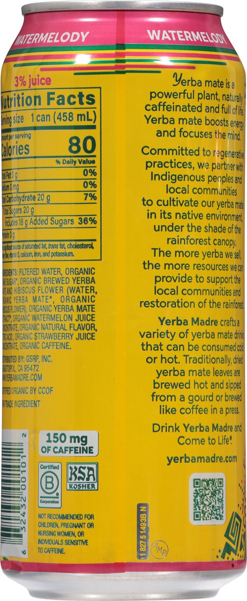 Yerba Madre Organic Watermelody Yerba Mate 15.5 fl oz
