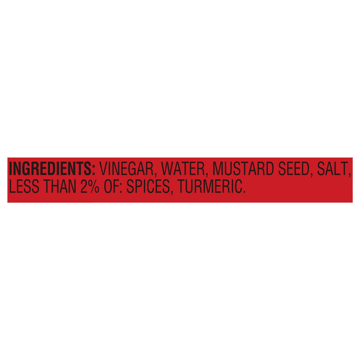 Vinegar, Water, Mustard Seed, Salt, Less than 2% of: Spices, Turmeric.