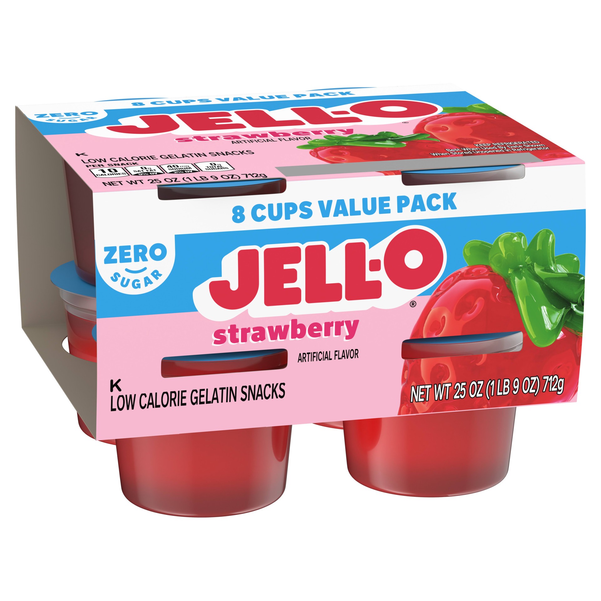 Jell-O Zero Sugar Strawberry Artificially Flavored Gelatin Cups deliver the great taste of Jell-O Gelatin in a low-calorie choice. Our delicious on-the-go gelatin comes in individual snack cups, perfe…