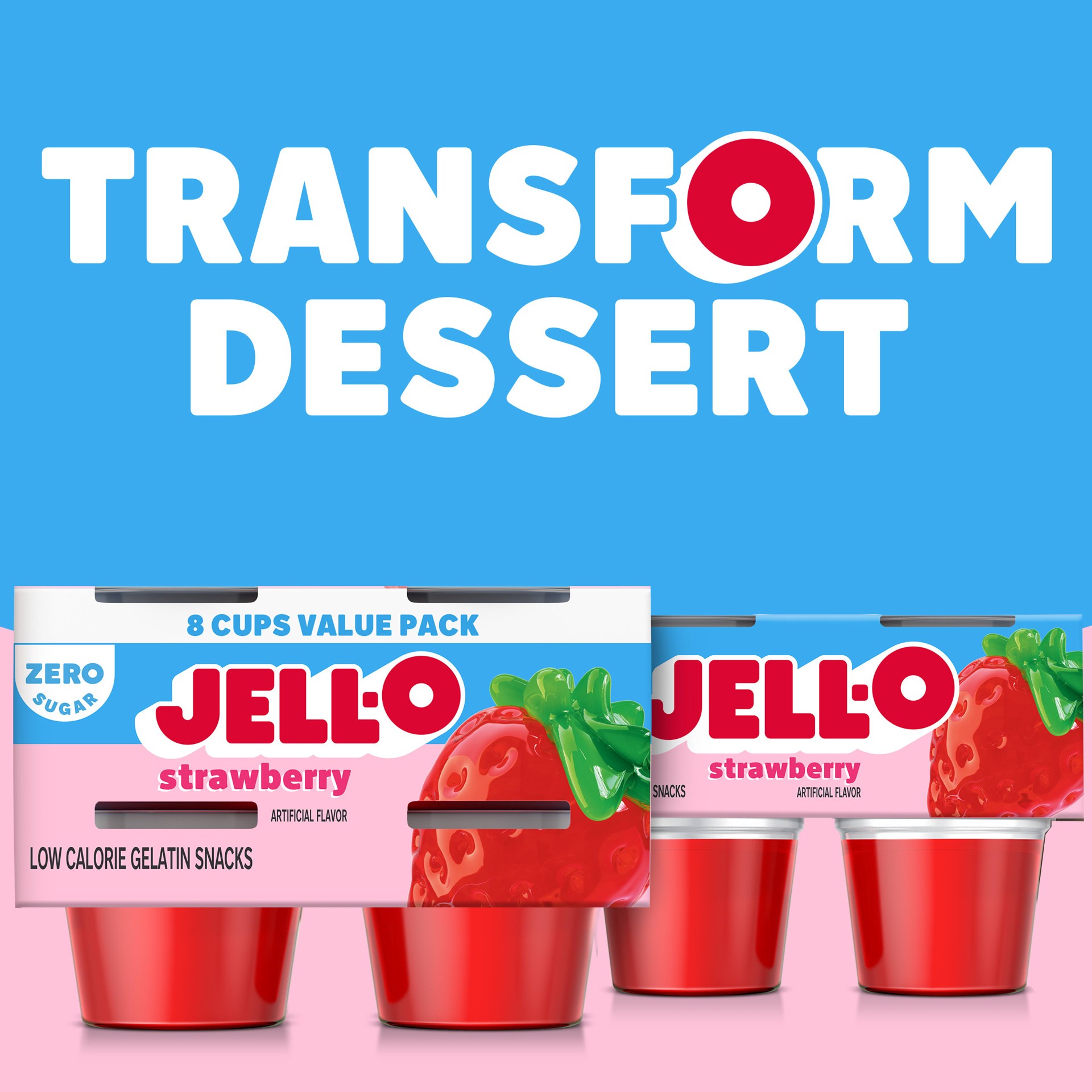 Jell-O Strawberry Artificially Flavored Zero Sugar Ready-To-Eat Gelatin Snack Family Size Pack - 8 Count