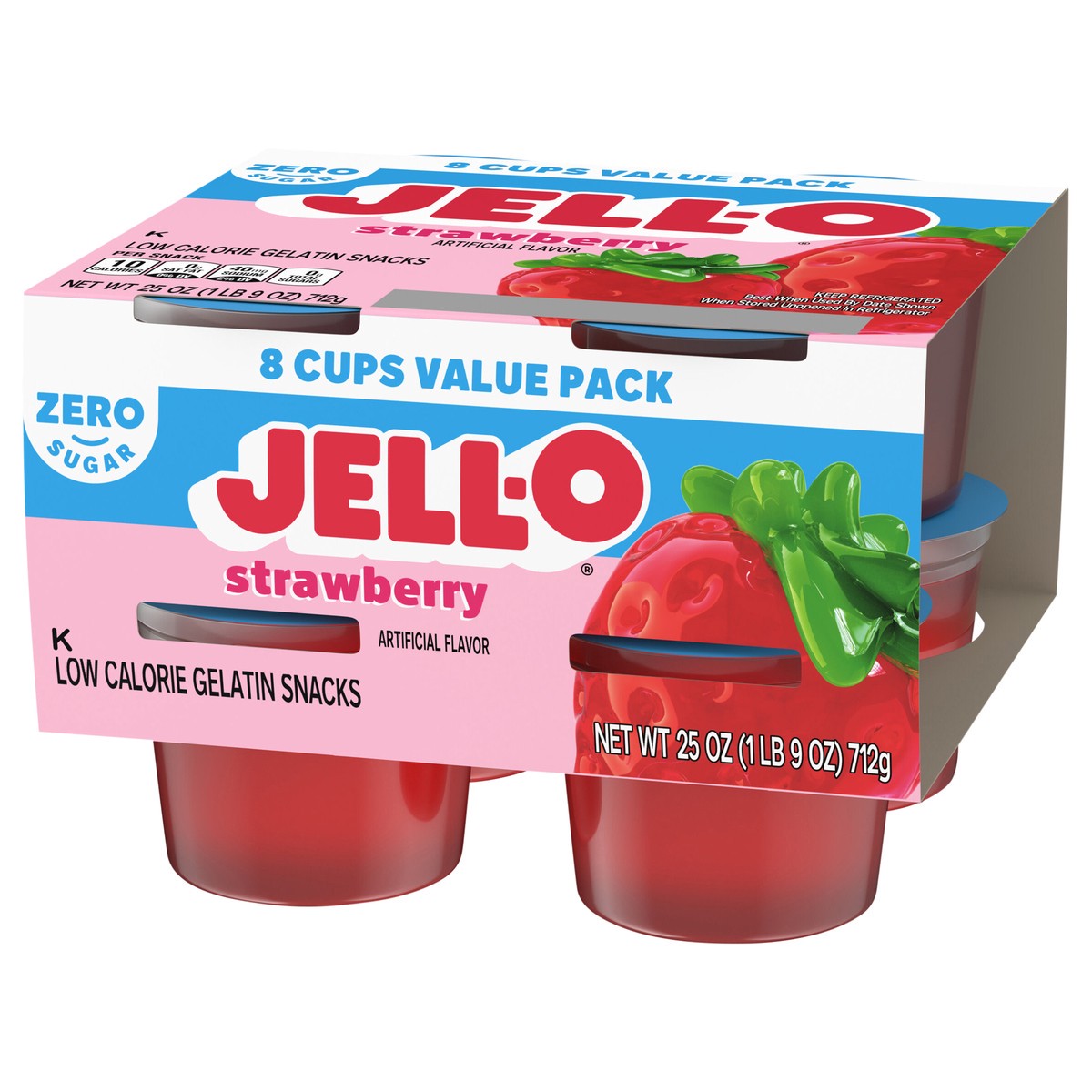 Jell-O Strawberry Artificially Flavored Zero Sugar Cups, 8 Count - 25 Oz