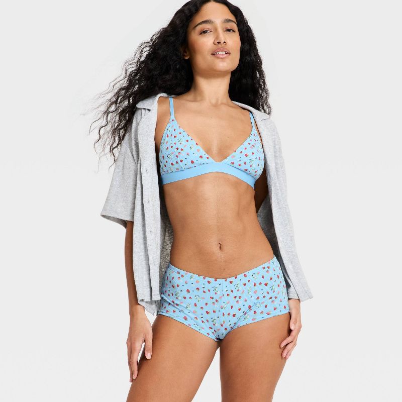 Women's Cotton Rib Triangle Bralette - Wild Fable™ Blue Strawberry XXS