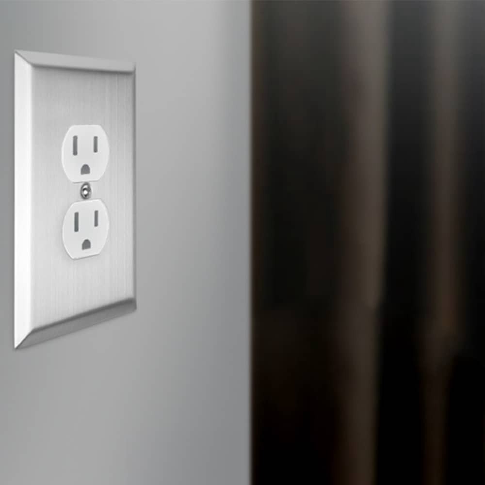 Duplex configuration. Solid sound compared to thin, hollow resonance of economy plastic plates. Will not crack, peel or discolor over time. Brushed nickel finish. Includes mounting screw(s) in matchin…