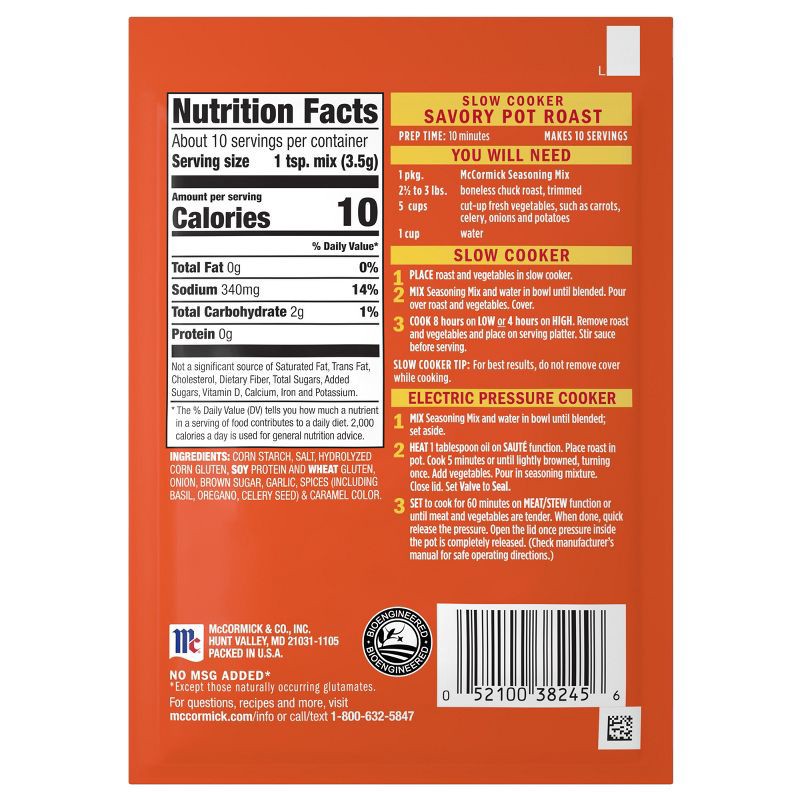- For savory pot roast in a slow cooker or electric pressure cookerOld-fashioned flavor with a blend of onion, garlic, herbs, and spicesEasy recipe with just 10 minutes prep timeServes 10; perfect for an easy weeknight dinner or weekend meal prepConvenient seasoning mix makes mealtime easy