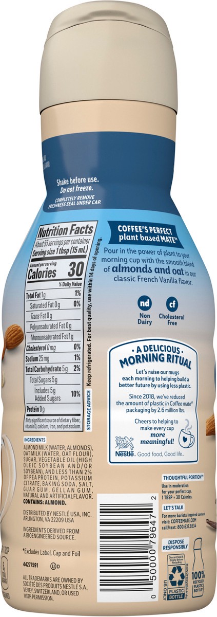 Coffee mate Plant Based Almond and Oat French Vanilla Flavored Liquid Coffee Creamer is the perfect way to create a delicious cup of coffee perfection. Coffee mate almond and oat coffee creamer adds t…