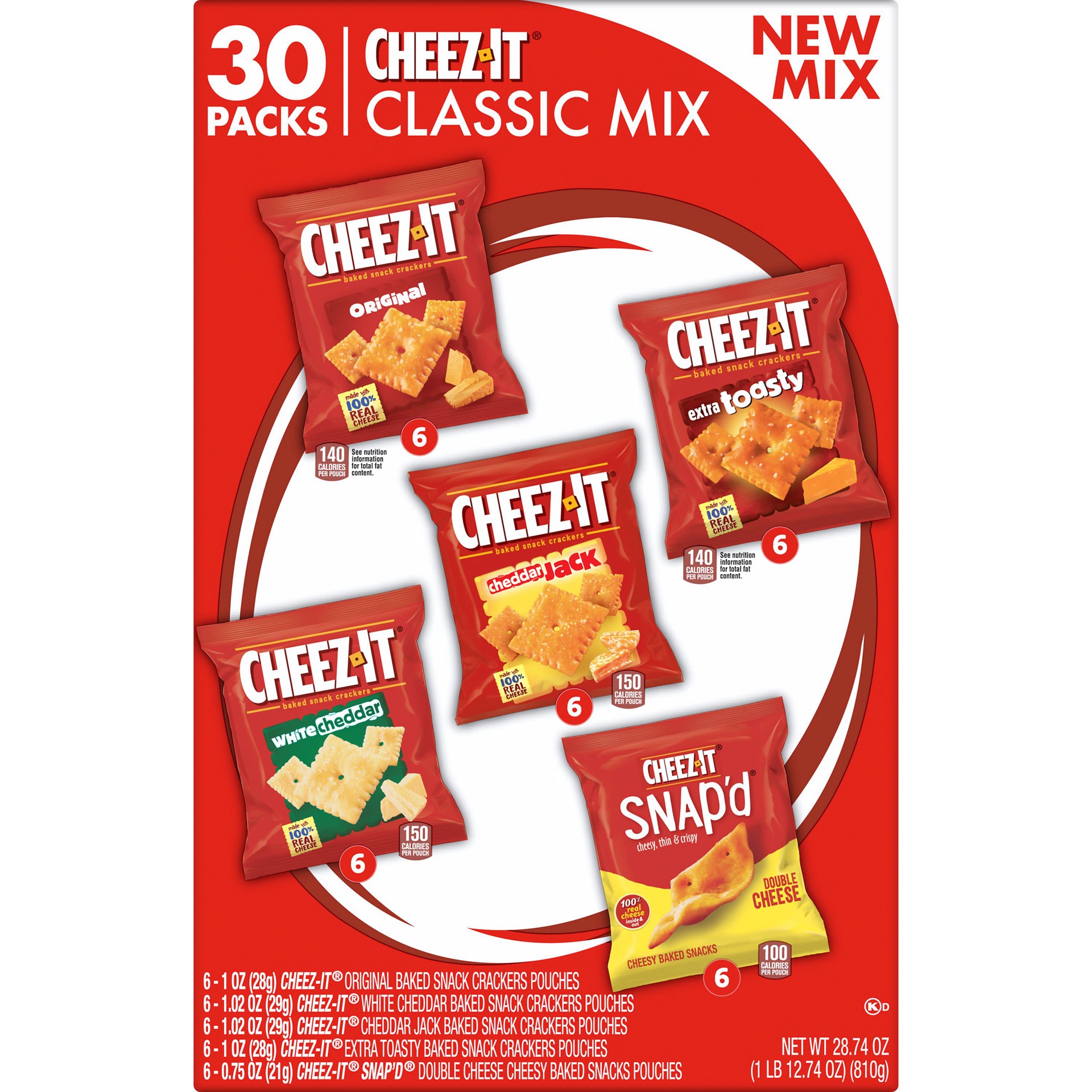 Cheez-It Cheese Crackers, Baked Snack Crackers, Office and Kids Snacks, Variety Pack, 28.74oz Box, 30 Packs