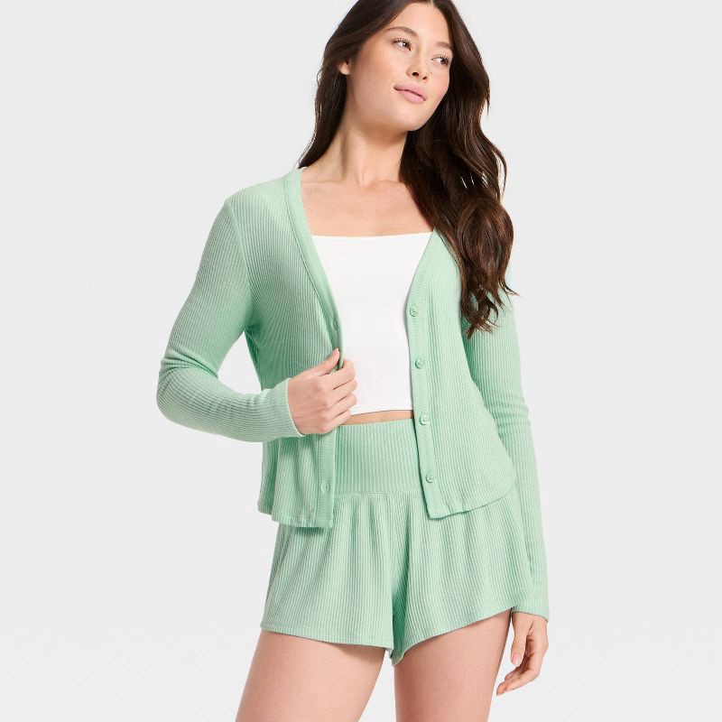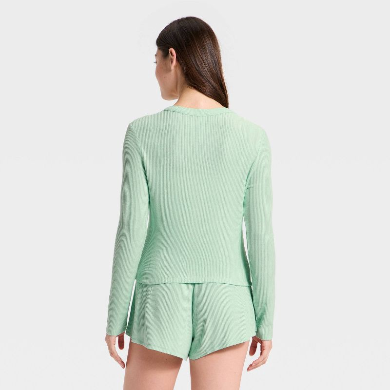 Women's Cozy Ribbed Long Sleeve Button Front Cardi Top - Auden™ Mint M