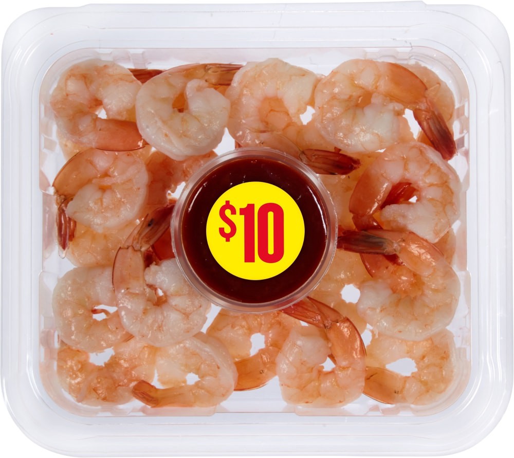 Shrimp, Water, Salt, Sodium Tripolyphosphate, Cocktail Sauce (Tomato Paste, Water, Sugar, Prepared Horseradish [Horseradish, Water, Vinegar, Salt, Soybean Oil, Artificial Mustard Flavor], Vinegar, Sal…