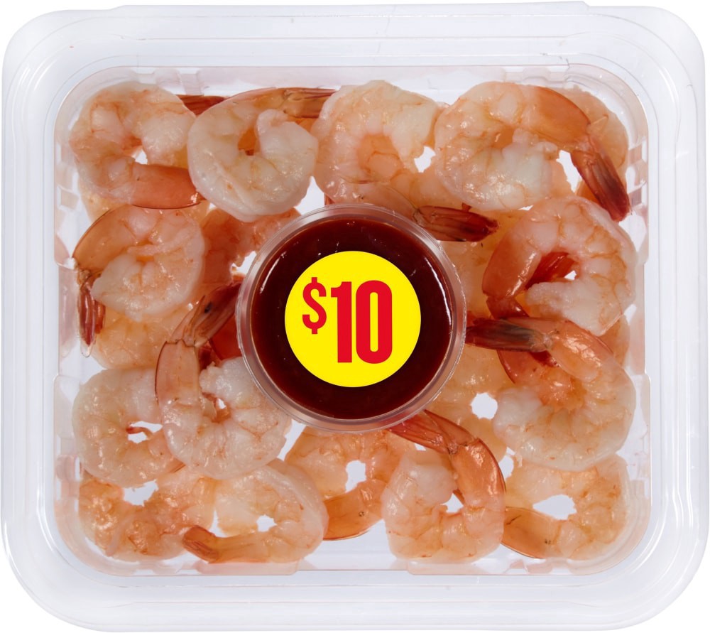 Shrimp, Water, Salt, Sodium Tripolyphosphate, Cocktail Sauce (Tomato Paste, Water, Sugar, Prepared Horseradish [Horseradish, Water, Vinegar, Salt, Soybean Oil, Artificial Mustard Flavor], Vinegar, Sal…