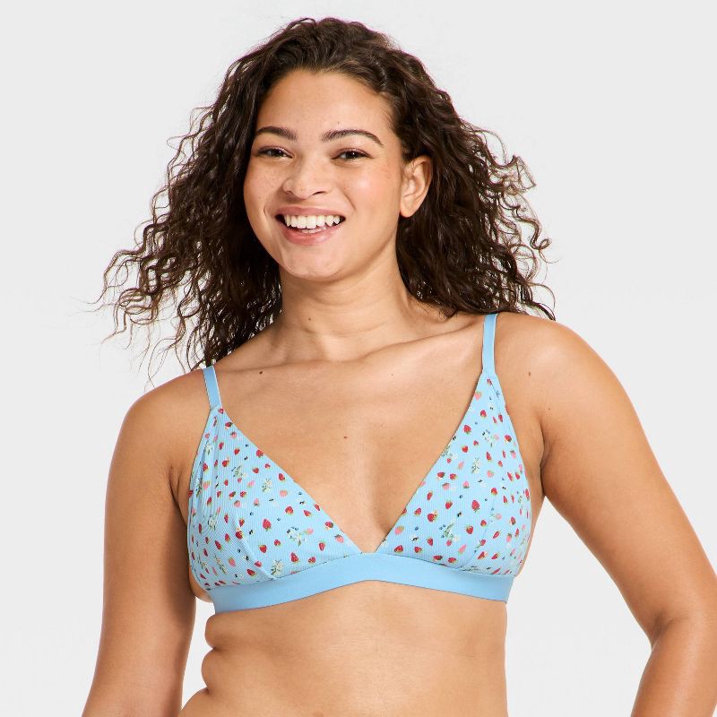 Women's Cotton Rib Triangle Bralette - Wild Fable™ Blue Strawberry XS