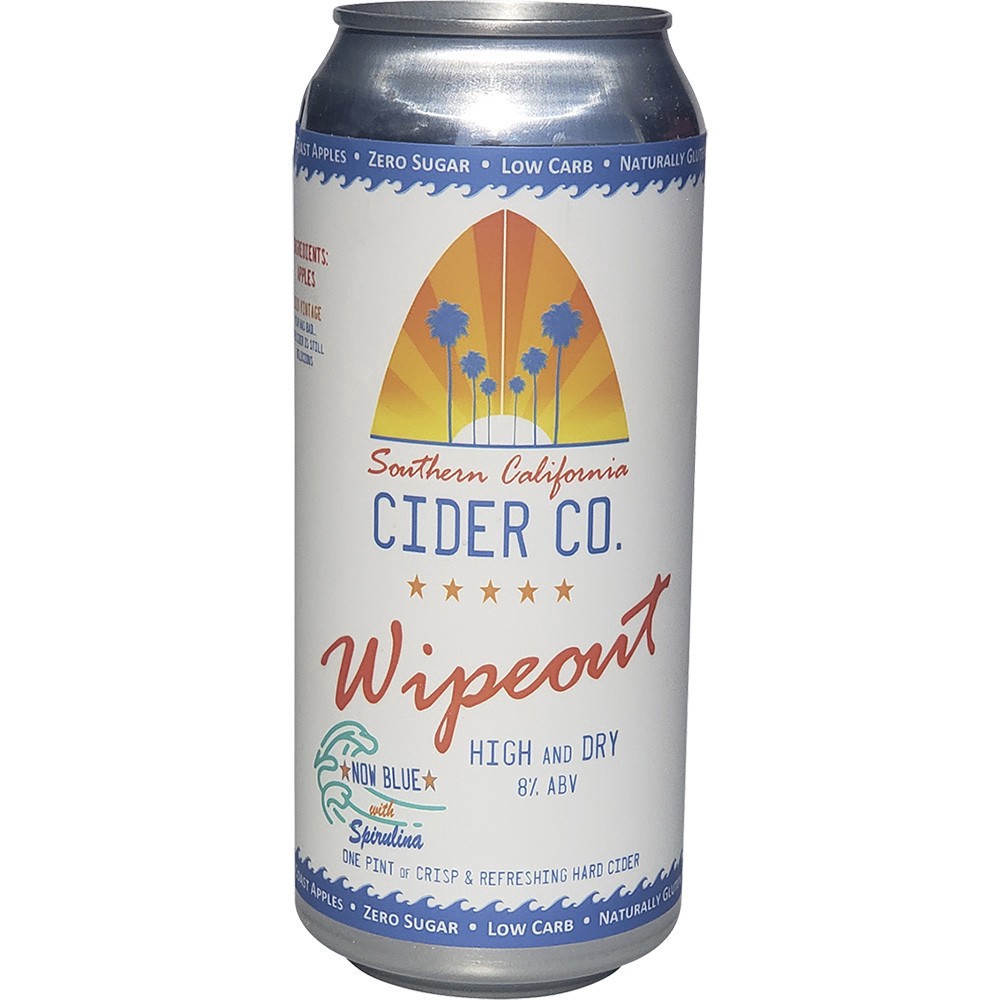 California - Specialty Beer - 8.0% ABV. "The Spirulina makes it blue like the tasty wave you rode this morning. Ripe apples on the nose with a semi dry mouthfeel make Wipeout High n Dry your perfect b…