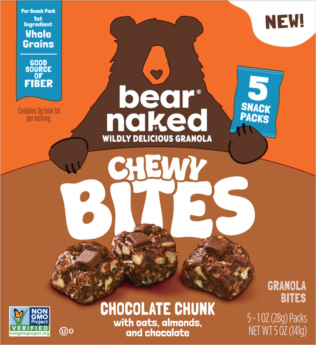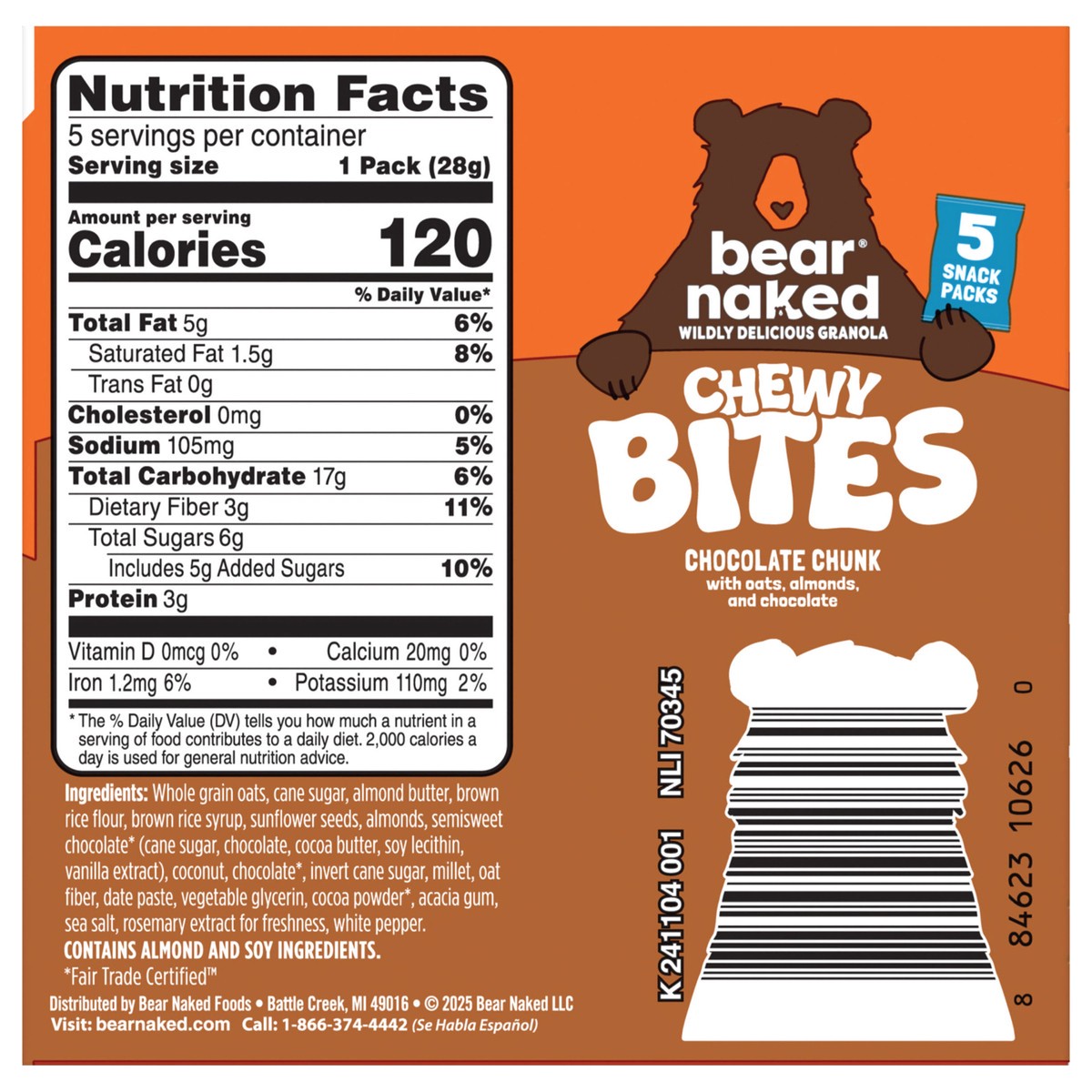 Bear Naked Chewy Granola Bites Chocolate Chunk, Whole Grain and Fiber, 5 Count