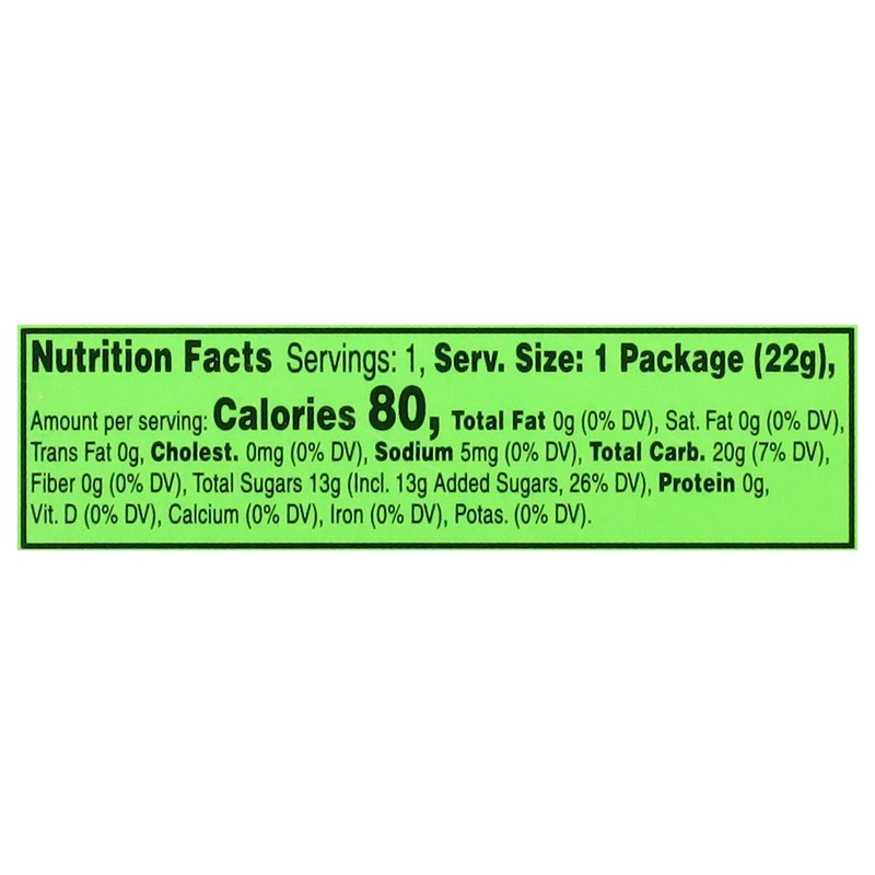 Cherry. Lemon. Strawberry. Lime. Orange. Chewy assorted fruit flavored candy. Naturally & artificially flavored. 80 calories per package. Gluten free. Fat free. Contains bioengineered food ingredients…