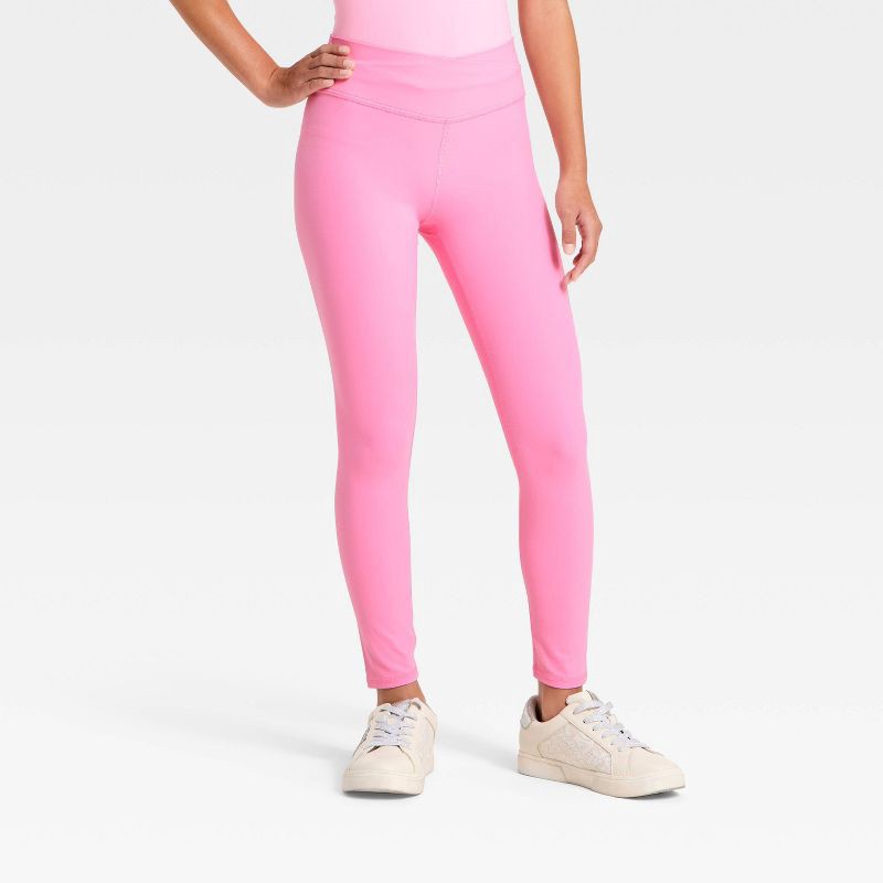 Girls' Everyday Soft Crossover Waistband Leggings - All In Motion™ Vibrant Pink M