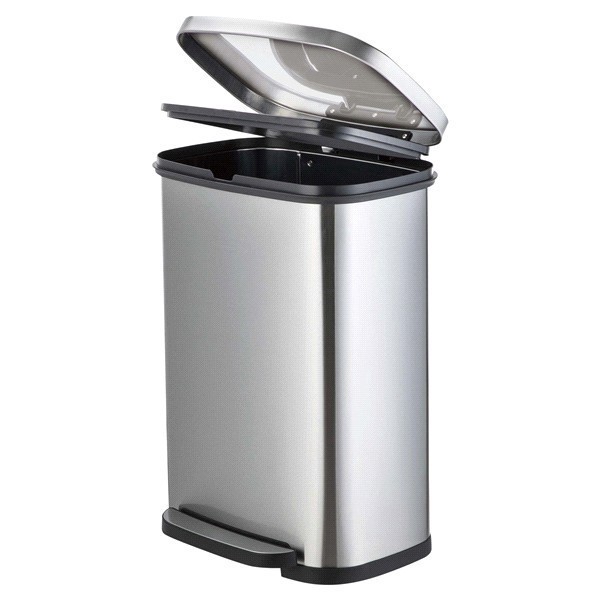 Home Zone Wide Rectangle Stainless Steel Trash Bin is a strongly constructed, finger print resistant trash bin with a nonskid base and quiet, slowclose stay open lid.