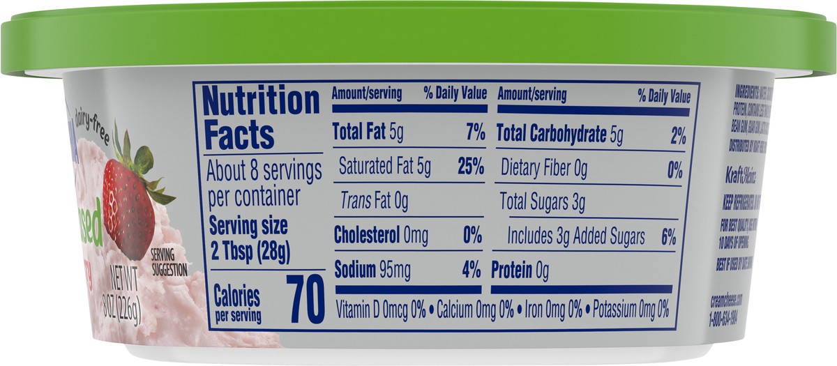 - Our strawberry flavored plant-based spread contains no lactose