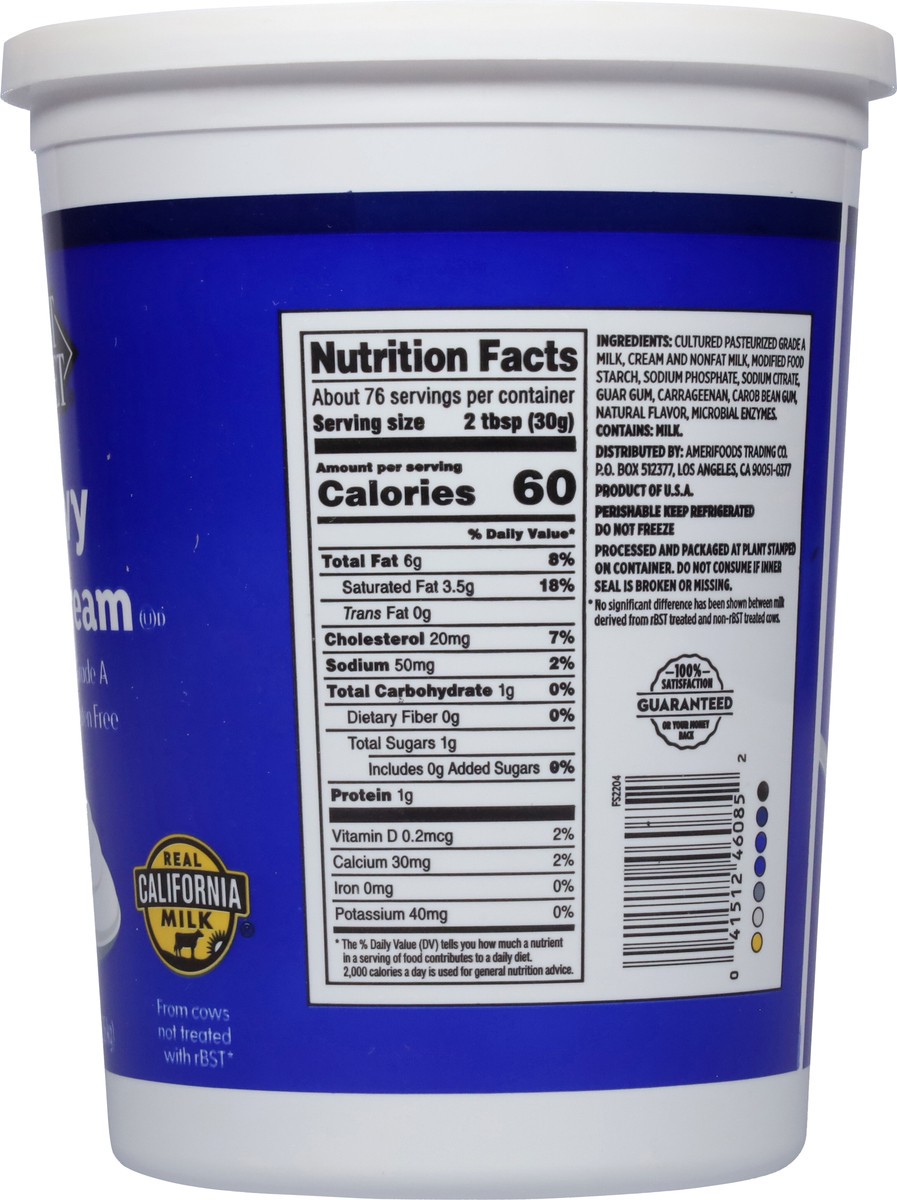 Heavy body. Pasteurized. From cows not treated with rBST (No significant difference has been shown between milk derived from rBST treated and non-rBST treated cows).