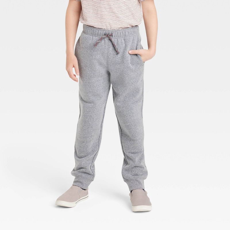slide 1 of 3, Boys' Fleece Sweatpants - Cat & Jack™ Charcoal Gray S: Reinforced Knee, Side Pocket, Drawstring, 1 ct