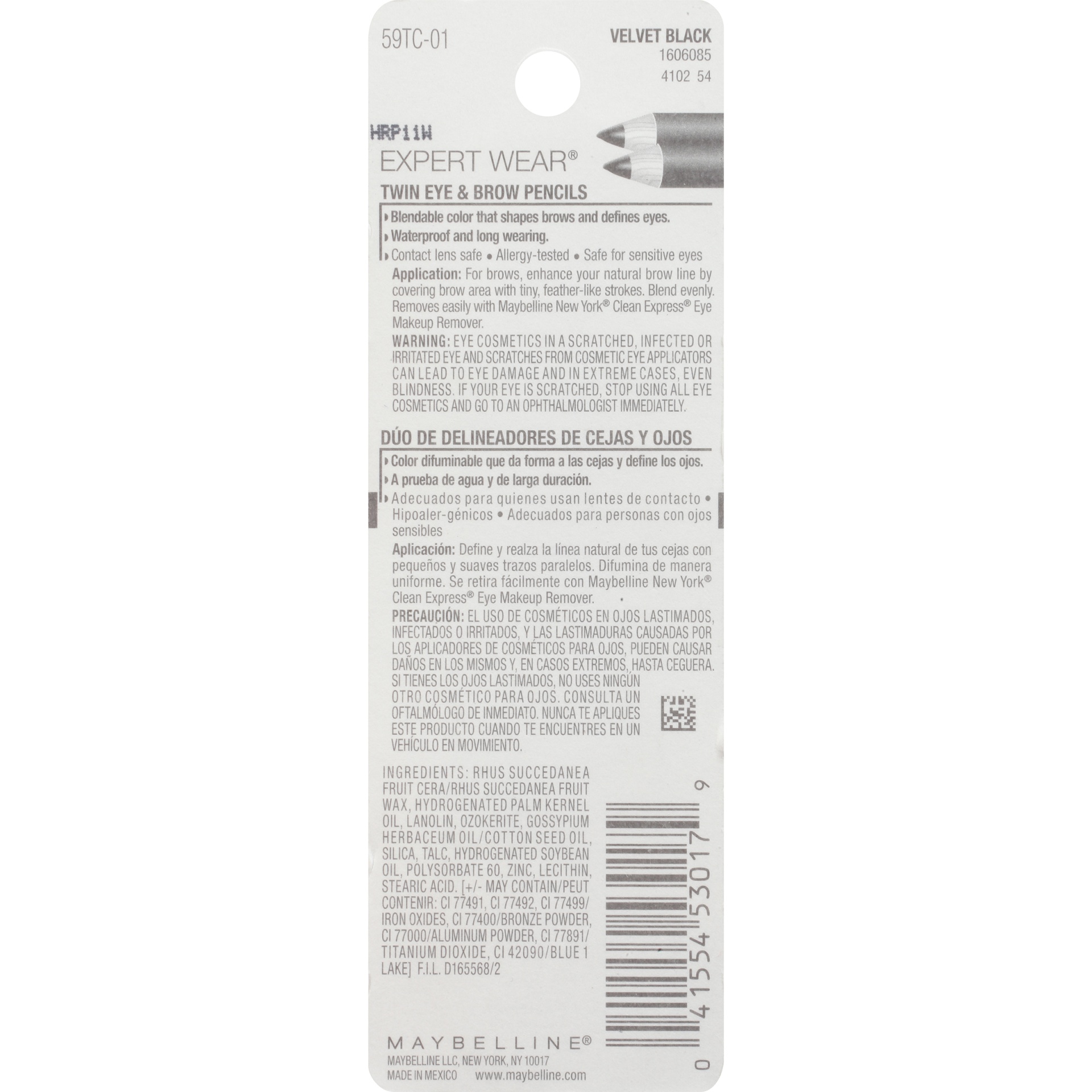 Maybelline Expert Wear Twin Waterproof Brow & Eye Wood Pencil - 01 Velvet Black - 0.06oz