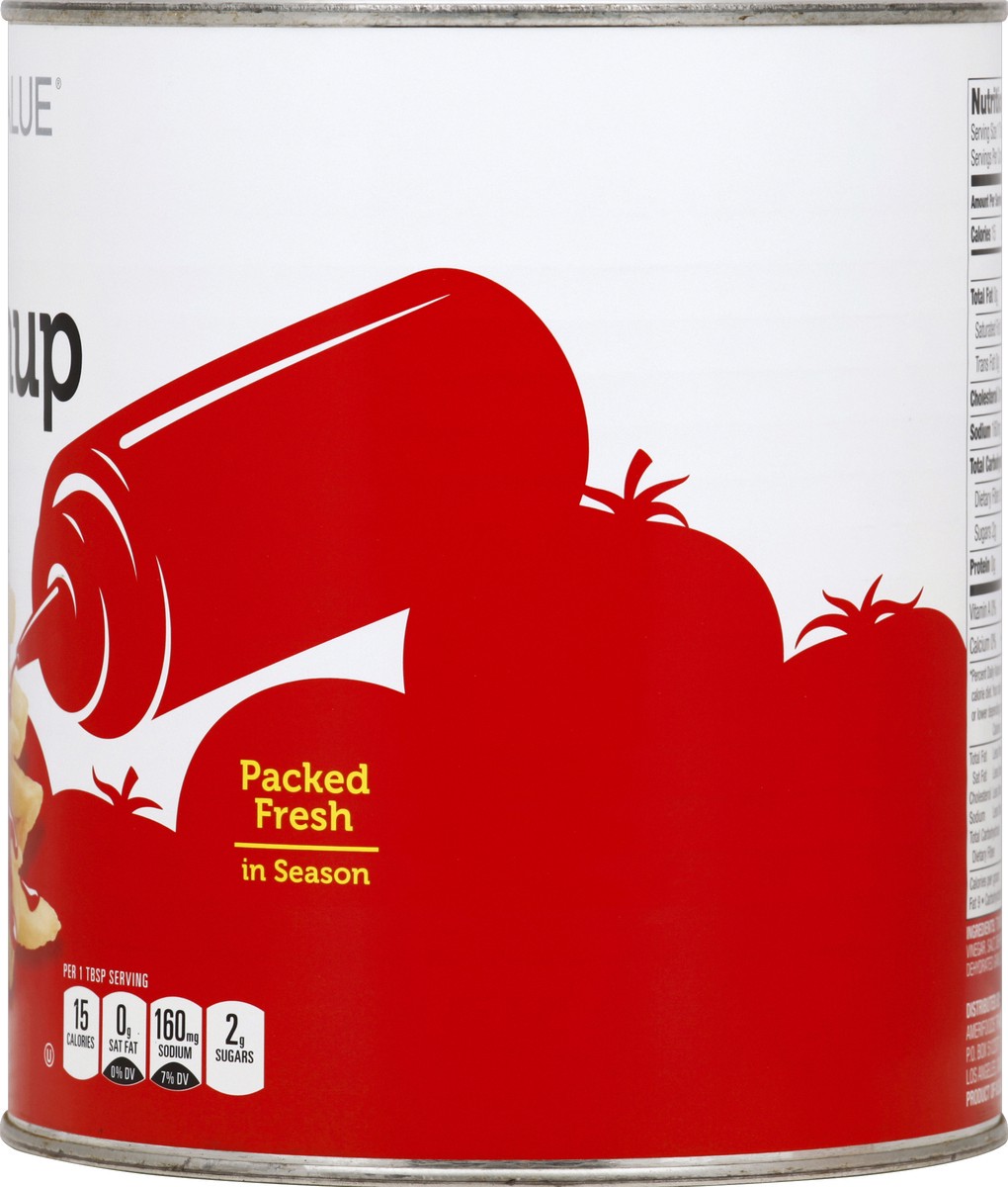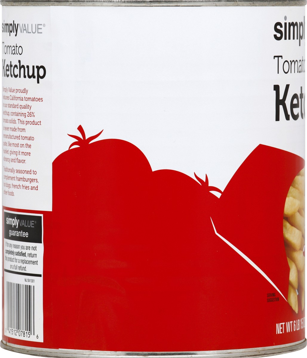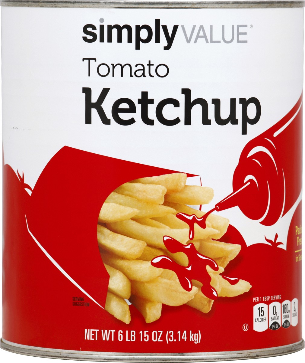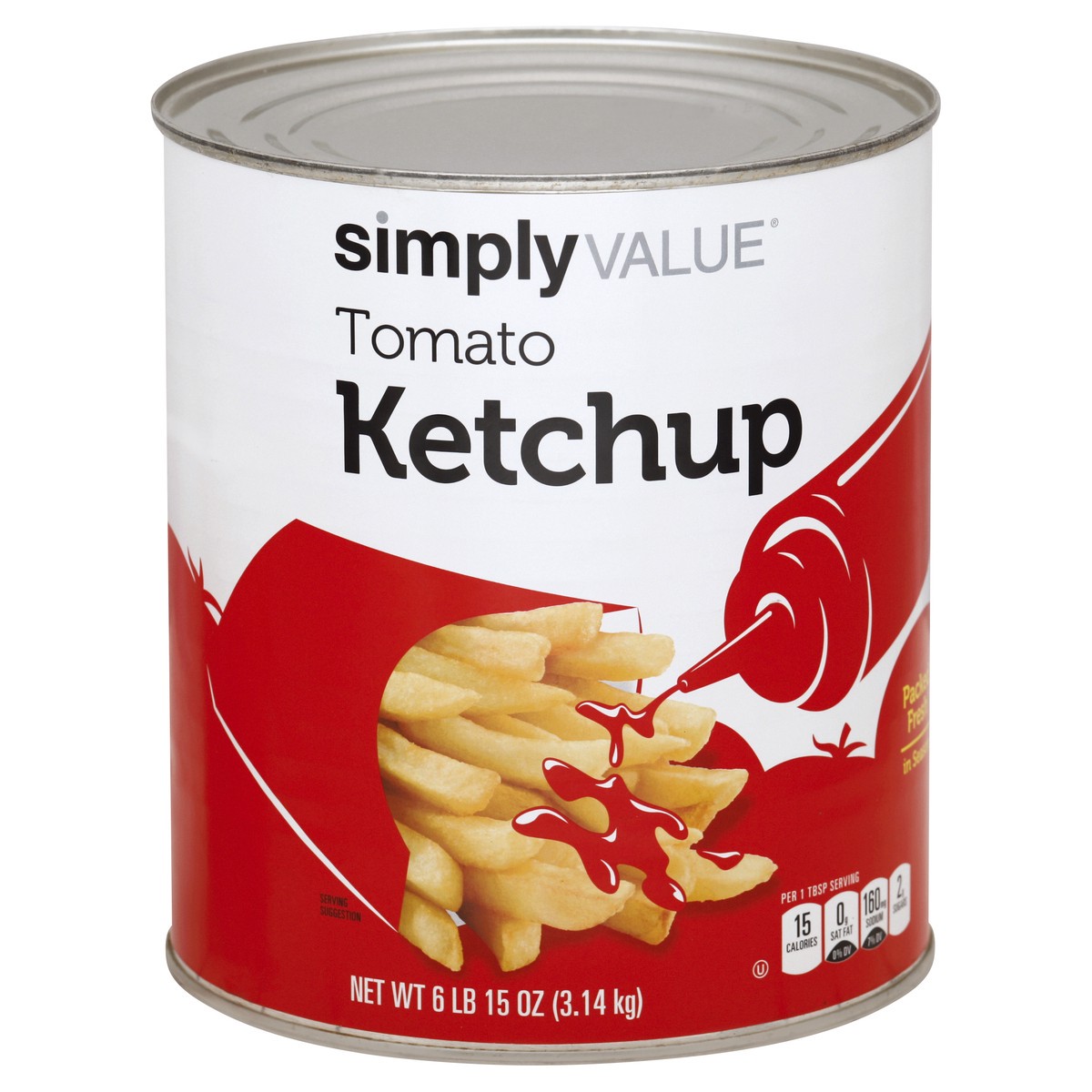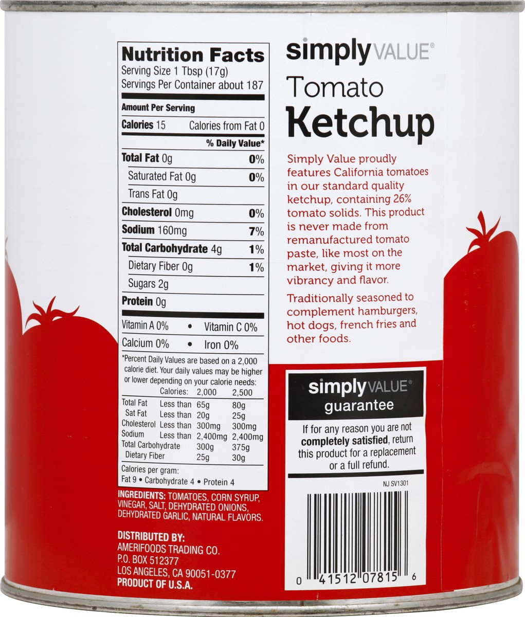 Per 1 Tbsp Serving: 15 calories; 0 g sat fat (0% DV); 160 mg sodium (7% DV); 2 g sugars. Simply Value proudly features California tomatoes in our standard quality ketchup, containing 26% tomato solids…