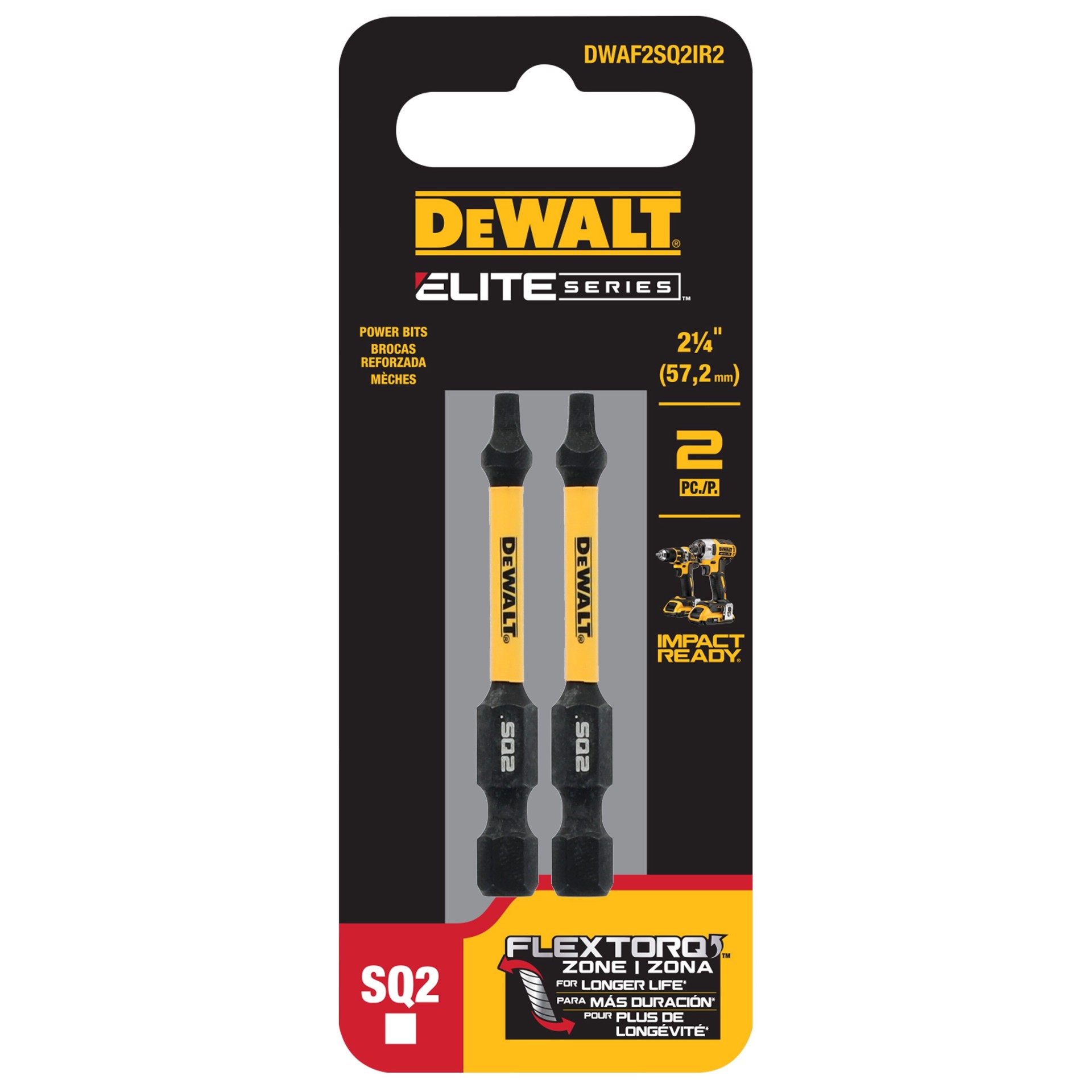 DEWALT ELITE SERIES 1/4-in x 2-1/4-in Square/Robertson Impact Driver Bit Set 2 -Piece