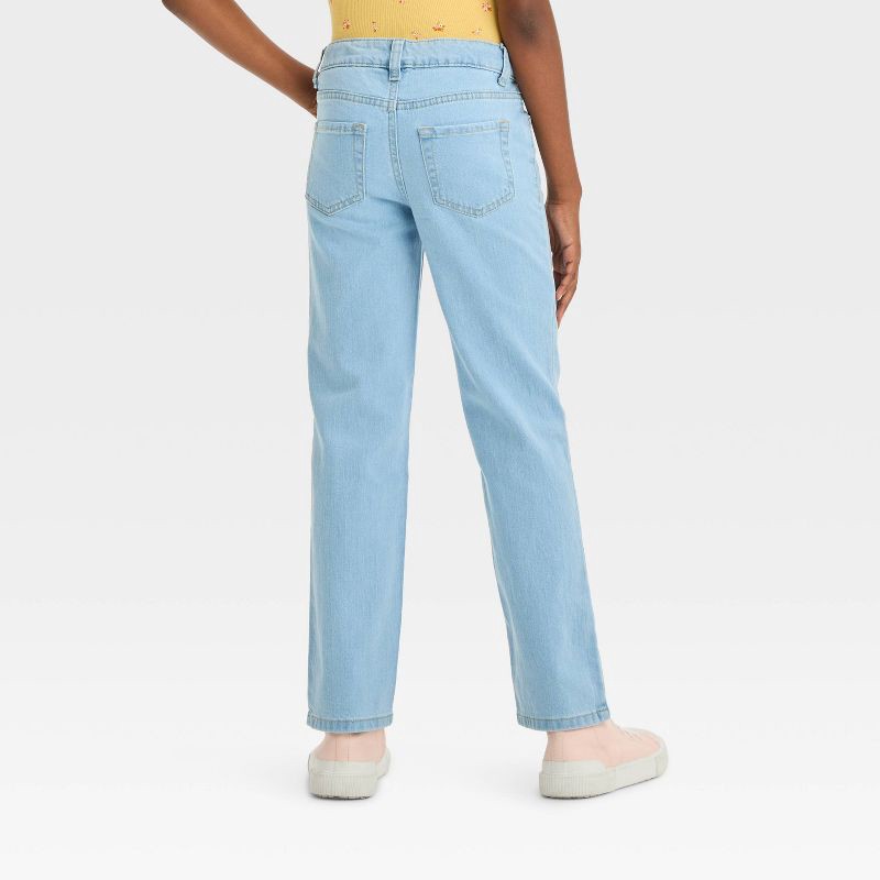 Girls' Mid-Rise Denim Straight Jeans - Cat & Jack™ Light Wash 4: Adjustable Waistband, Stretch, Machine Washable