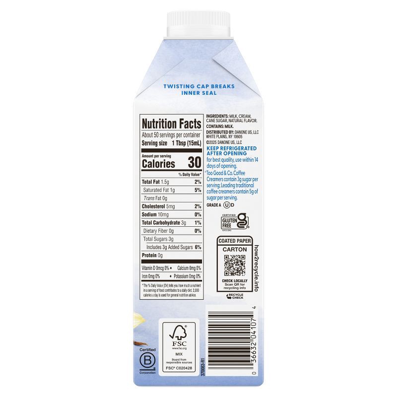 - REAL GOODNESS: Too Good & Co. Roasted Vanilla Creamer is made with real milk, real cream and real cane sugar