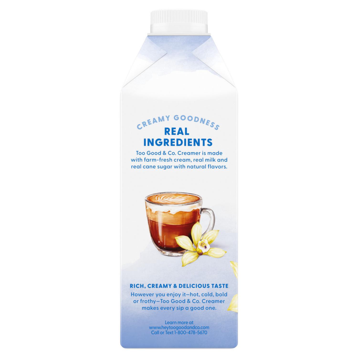 - Deliciously Good Coffee Creamer: One 25.4 fl oz bottle of Too Good & Co. Roasted Vanilla Coffee CreamerReal Goodness: Too Good & Co. Roasted Vanilla Creamer is made with real milk, real cream and real cane sugar40% Less Sugar*: Too Good & Co. Roasted Vanilla Coffee Creamer contains 3g sugar per serving, 40% less than leading coffee creamers*Enhance Hot and Cold Coffee: Add this flavored creamer to your favorite coffee beverages, including iced coffee, cold brew, lattes and it also tastes great in morning shakes and breakfast smoothiesGoodness You Can Trust: Roasted vanilla creamer contains no artificial sweeteners, artificial flavors, preservatives, added gums or added oils
