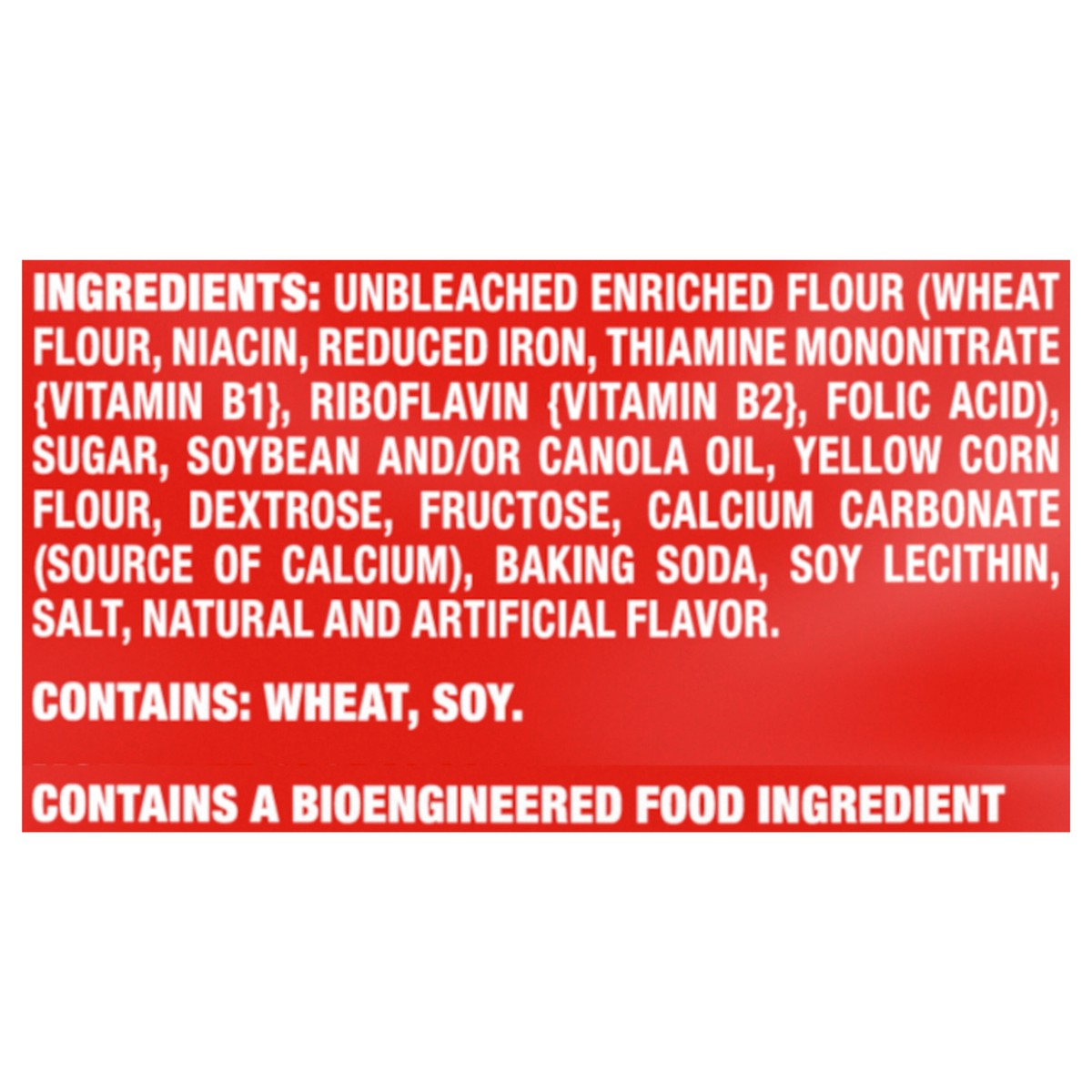 INGREDIENTS: UNBLEACHED ENRICHED FLOUR (WHEAT FLOUR, NIACIN, REDUCED IRON, THIAMINE MONONITRATE {VITAMIN B1}, RIBOFLAVIN {VITAMIN B2}, FOLIC ACID), SUGAR, SOYBEAN AND/OR CANOLA OIL, YELLOW CORN FLOUR,…